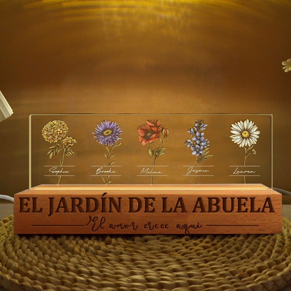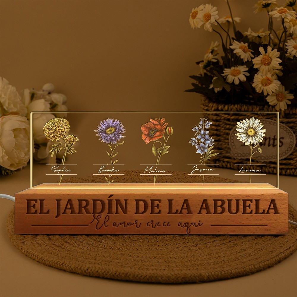 Luz de noche de madera con diseño de flores de nacimiento "El amor crece aquí", regalo de Navidad único para mamá y abuela.
