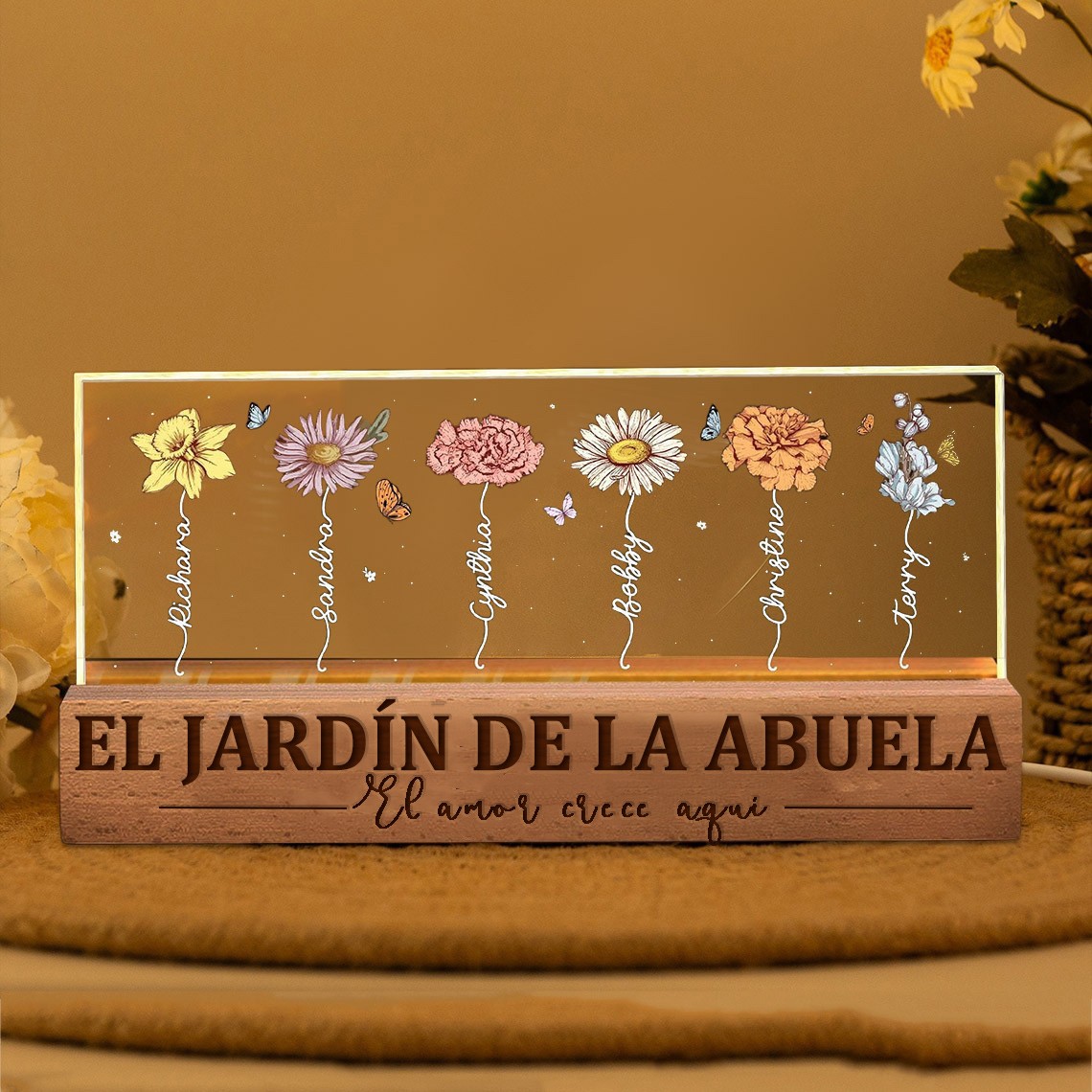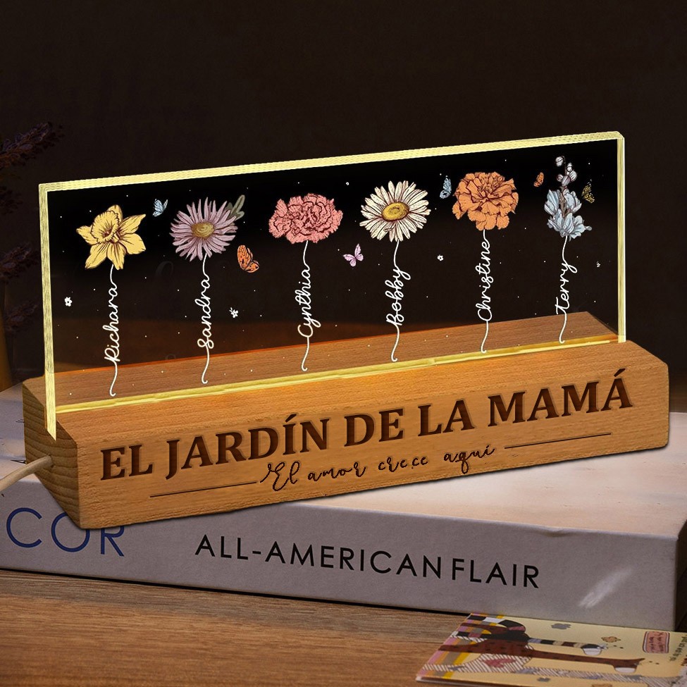 Luz de noche de madera con diseño de flores de nacimiento "El amor crece aquí", regalo único para mamá, abuela y el Día de la Madre.