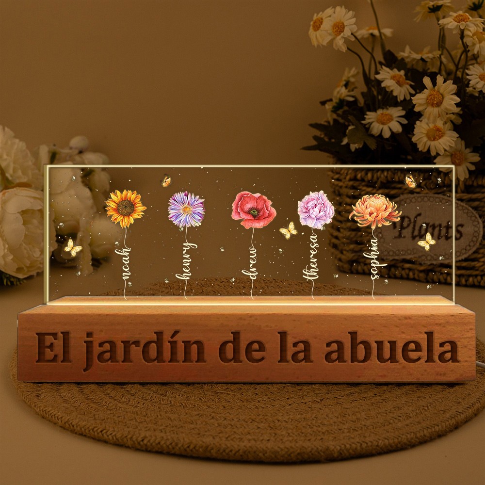 Luz de noche de madera con flor de nacimiento en el jardín de la abuela personalizada, regalo único para mamá, abuela, ideas de regalos para el día de la madre