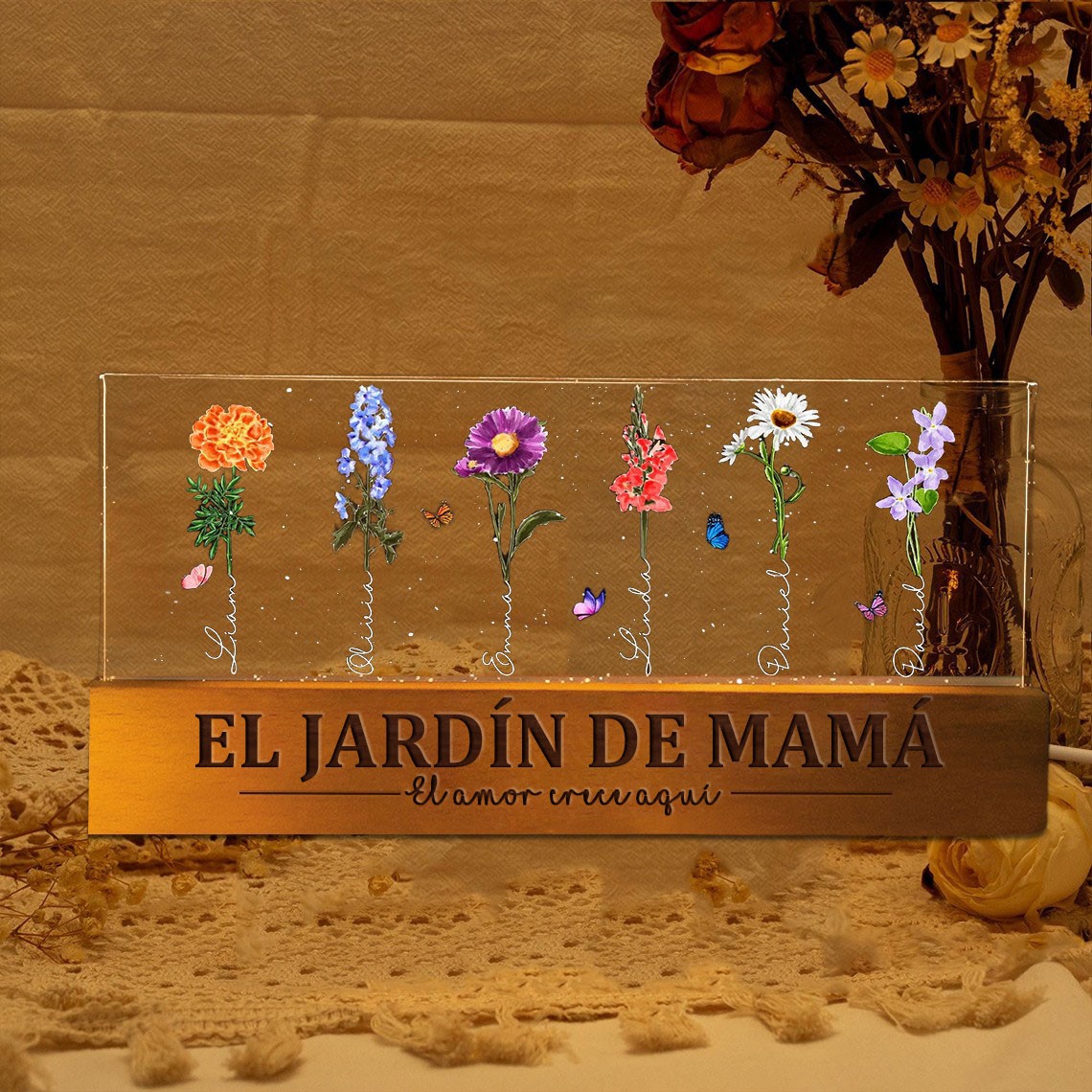 Luz de noche personalizada con flores de nacimiento para el jardín de mamá con los nombres de los niños, regalo de recuerdo de cumpleaños, regalos para mamá y abuela, ideas únicas para el Día de la Madre.