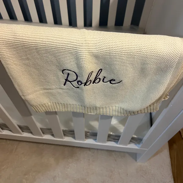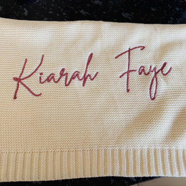 Manta bordada personalizada con el nombre del bebé. Regalo único para baby shower. Recuerdo para niños. Regalo de Navidad.