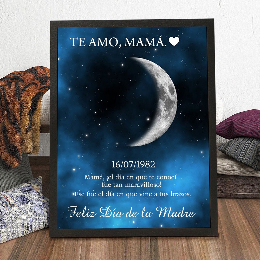 Marco de fotos de madera personalizado con la frase "Amo a mi mamá", fase lunar, regalo de cumpleaños para mamá, regalo único para el Día de la Madre, regalo de embarazo para mamá.