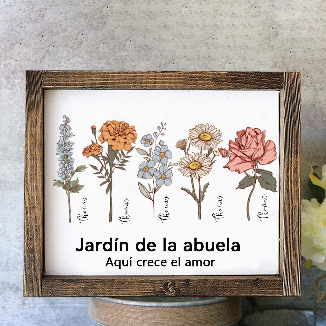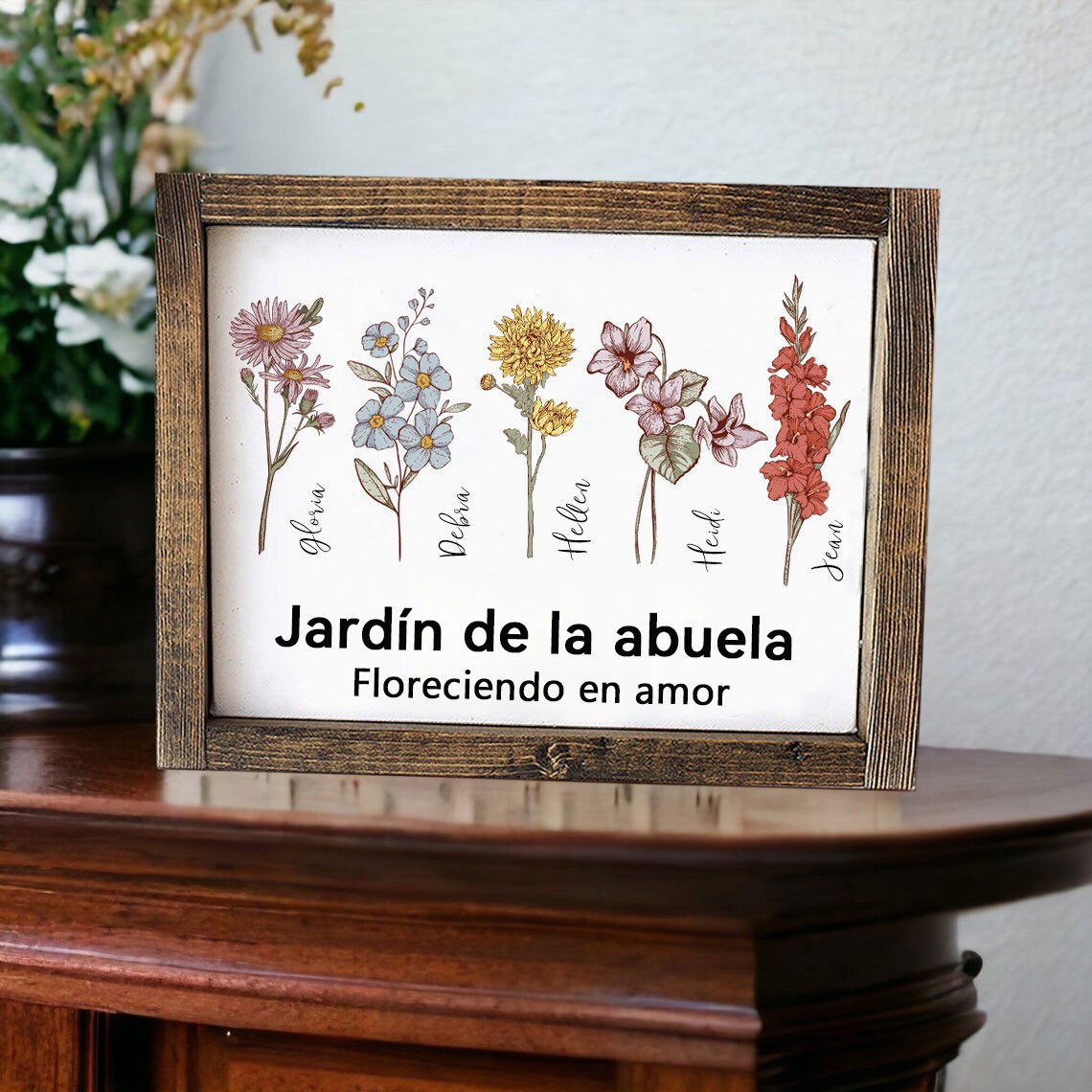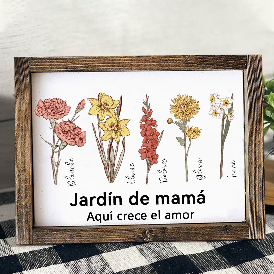 Marco de Madera Personalizado con Flor de Nacimiento del Mes y Nombres de los Niños – Cartel Familiar, Regalo Único para Mamá, Abuela, Día de la Madre, Madera.