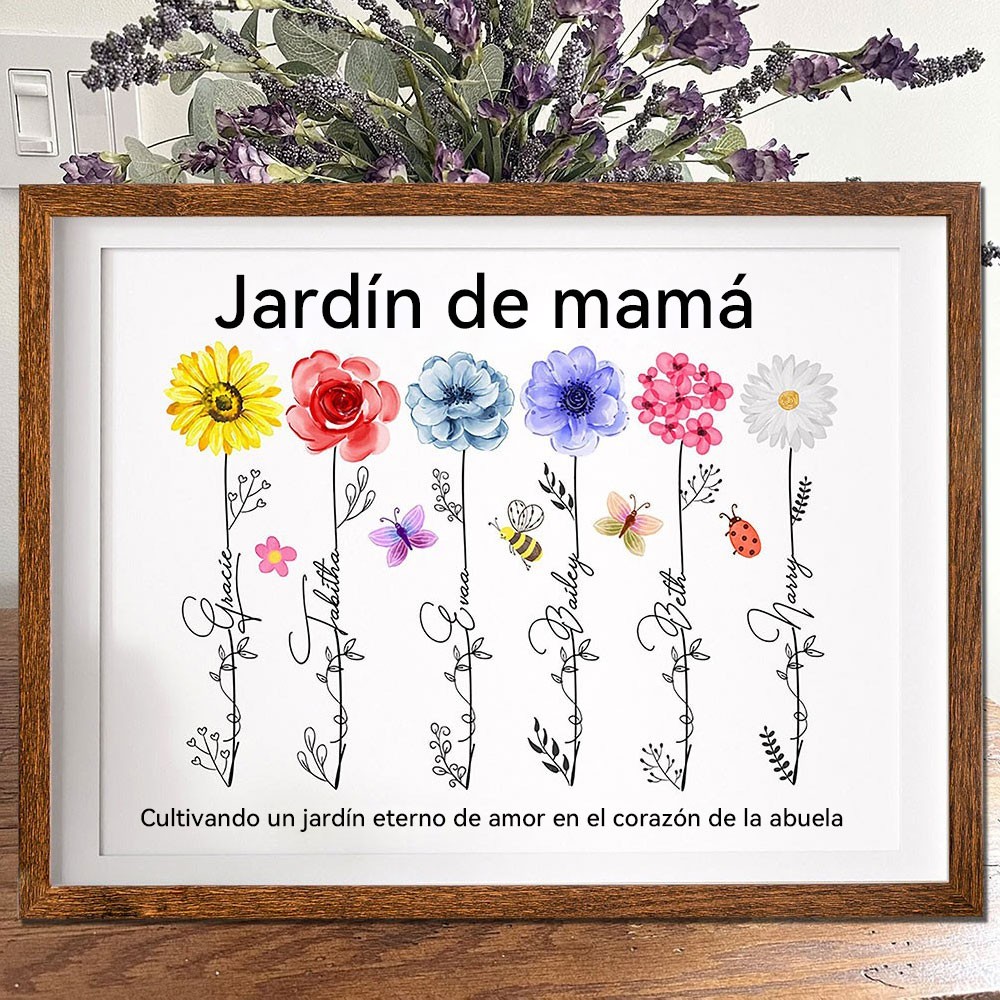 Marco de Madera Personalizado con Flor de Nacimiento para el Jardín de la Abuela - Regalo Único de Cumpleaños para Mamá/Abuela - Ideas para el Día de la Madre.