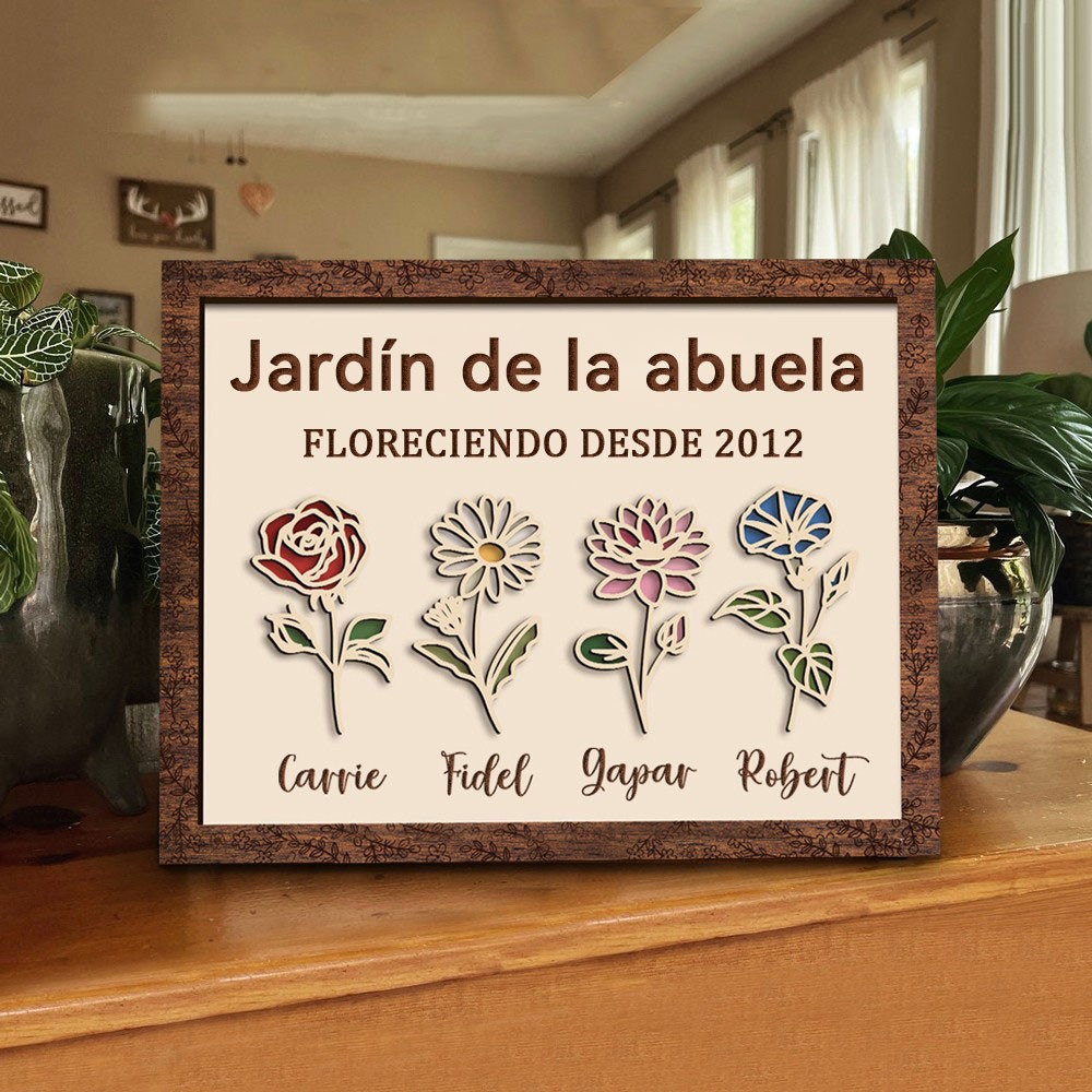 Marco de madera personalizado con flores de nacimiento "Jardín de Mamá en Flor" y nombres de los niños - Regalos familiares únicos para mamá, abuela, ideas de regalos para el Día de la Madre.