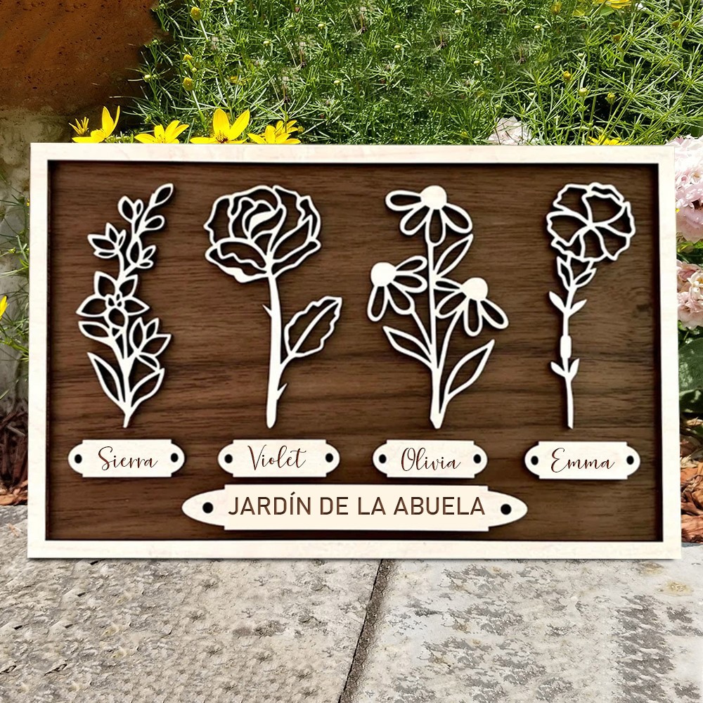 Marco de madera personalizado del jardín de la abuela, letrero único con el nombre de la flor de nacimiento, regalo familiar para mamá o abuela, regalo personalizado para el Día de la Madre