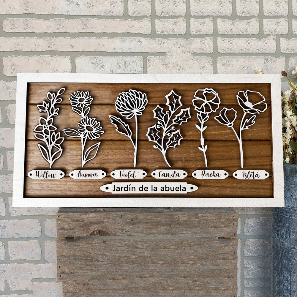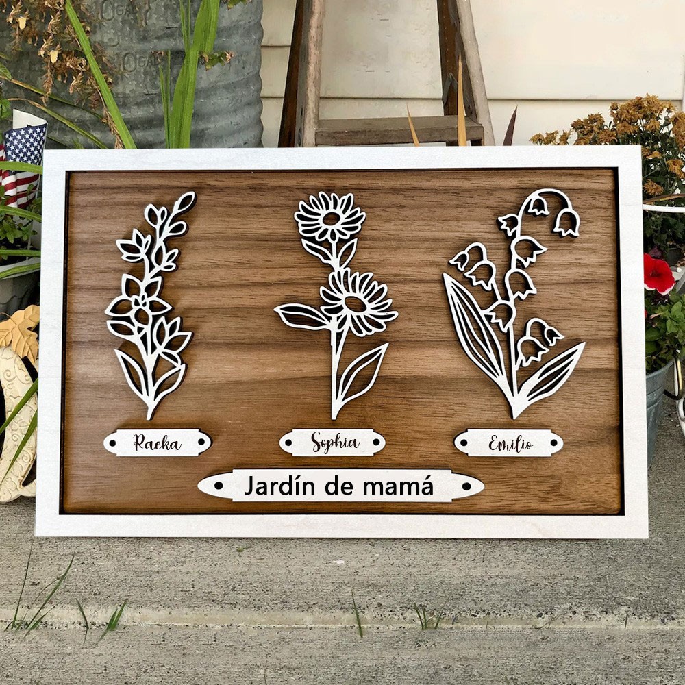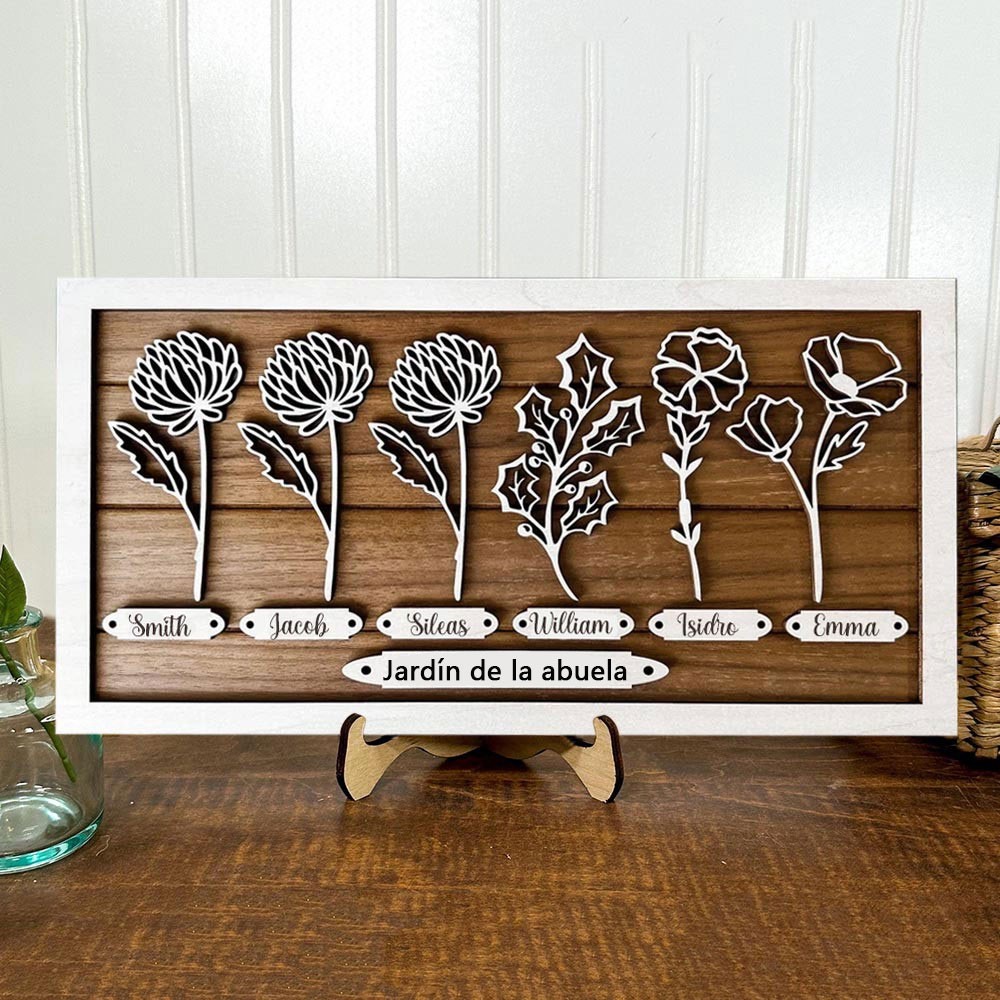 Marco de madera personalizado para jardín de mamá con flores de nacimiento, letrero familiar con nombres de niños. Regalo de cumpleaños único para mamá, abuela, regalo para baby shower, ideas de regalo para el Día de la Madre.