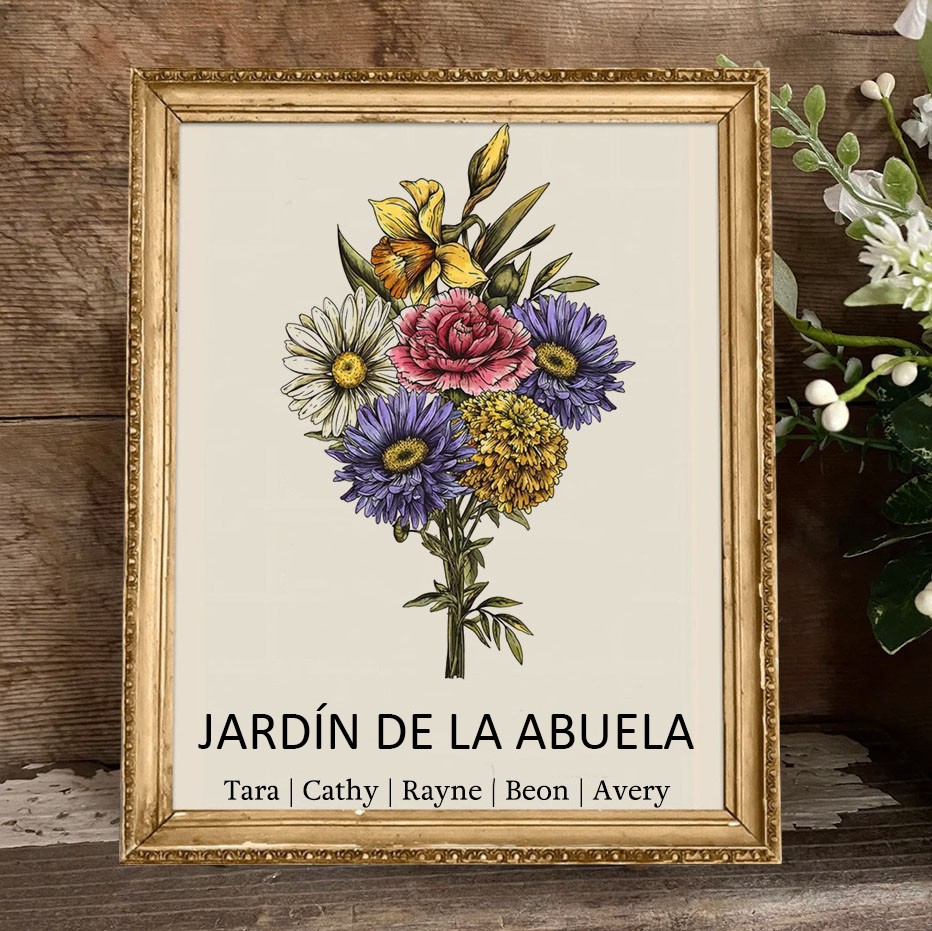 Marco de Ramo de Flores de Nacimiento Personalizado 'Jardín de Mamá' con Nombres de los Niños – Regalos Familiares Personalizados para Mamá, Abuela – Ideas de Regalo para Cumpleaños y Navidad