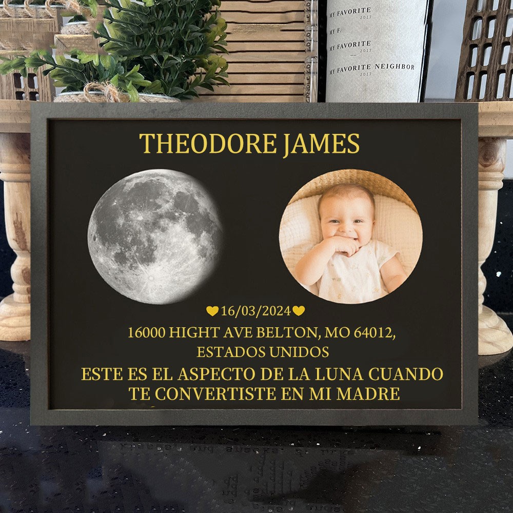 Marco personalizado con impresión de fases lunares, regalo para recién nacidos, regalo de cumpleaños para mamá primeriza, ideas para el regalo del Día de la Madre