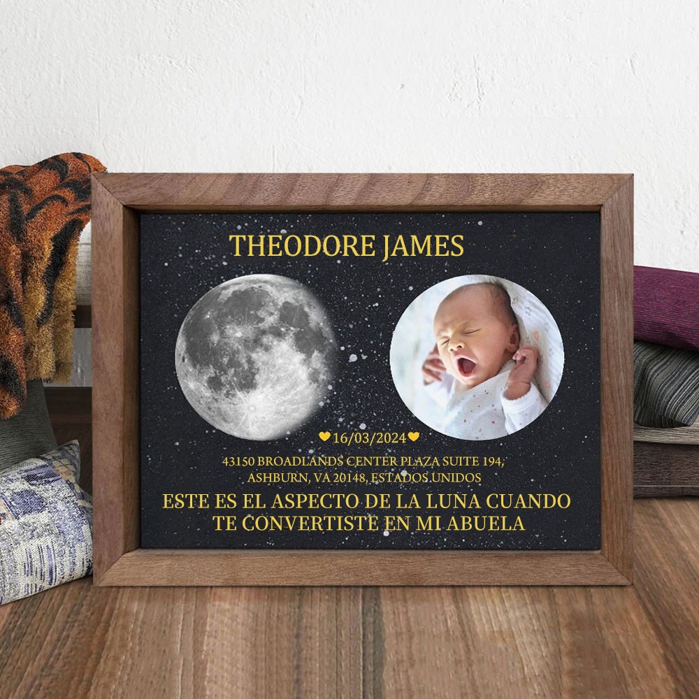 Marco personalizado con impresión de fases lunares, regalo único para mamá primeriza, regalo de cumpleaños para abuela, regalo para el Día de la Madre