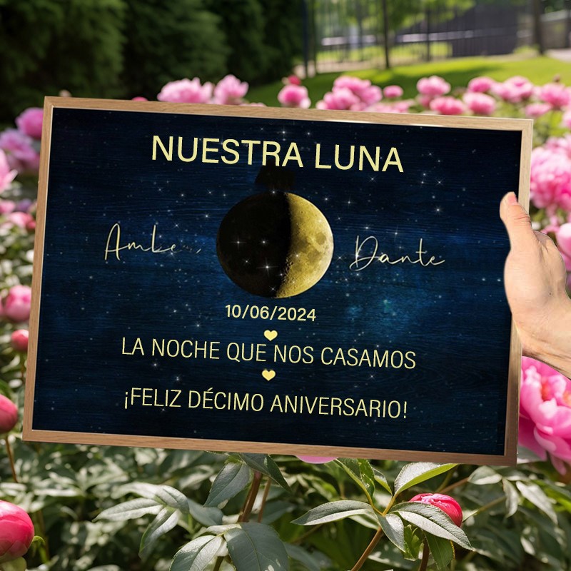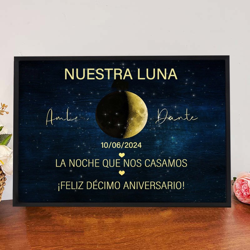 Marco personalizado con la impresión de la fase lunar: La noche en que nos casamos. Regalo de cumpleaños único para pareja. Ideas de regalo de aniversario.