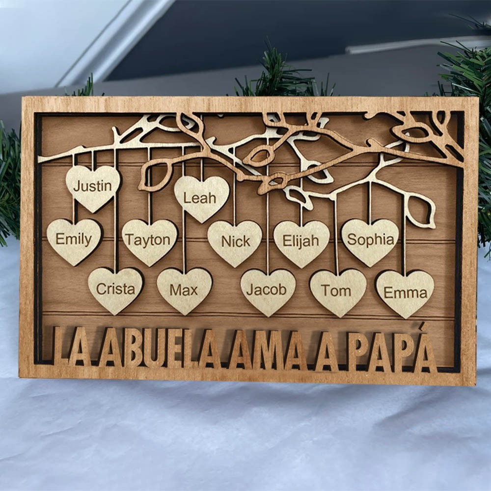 Personalizado árbol de madera de la vida signo placa familiar regalo para mamá regalo único para la abuela