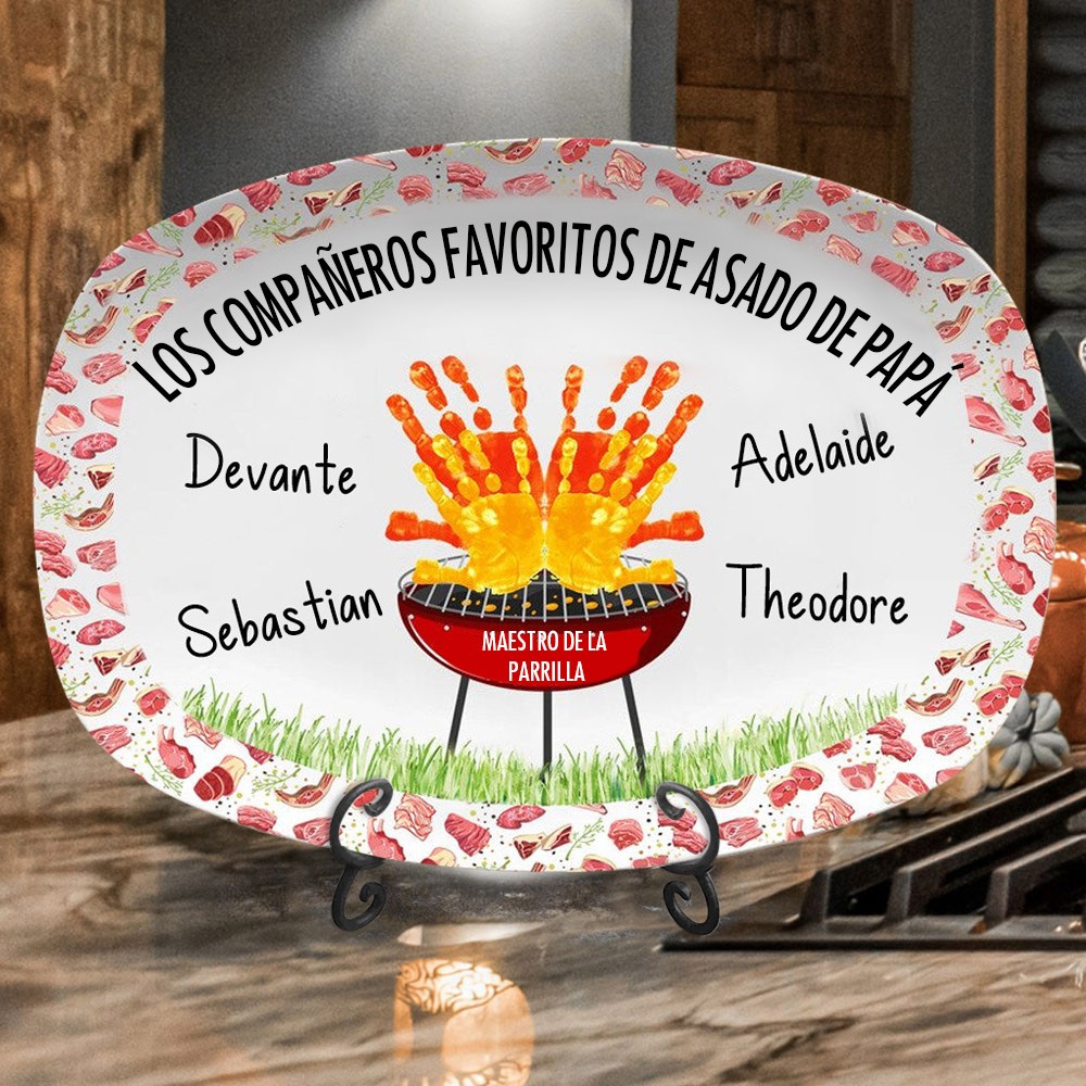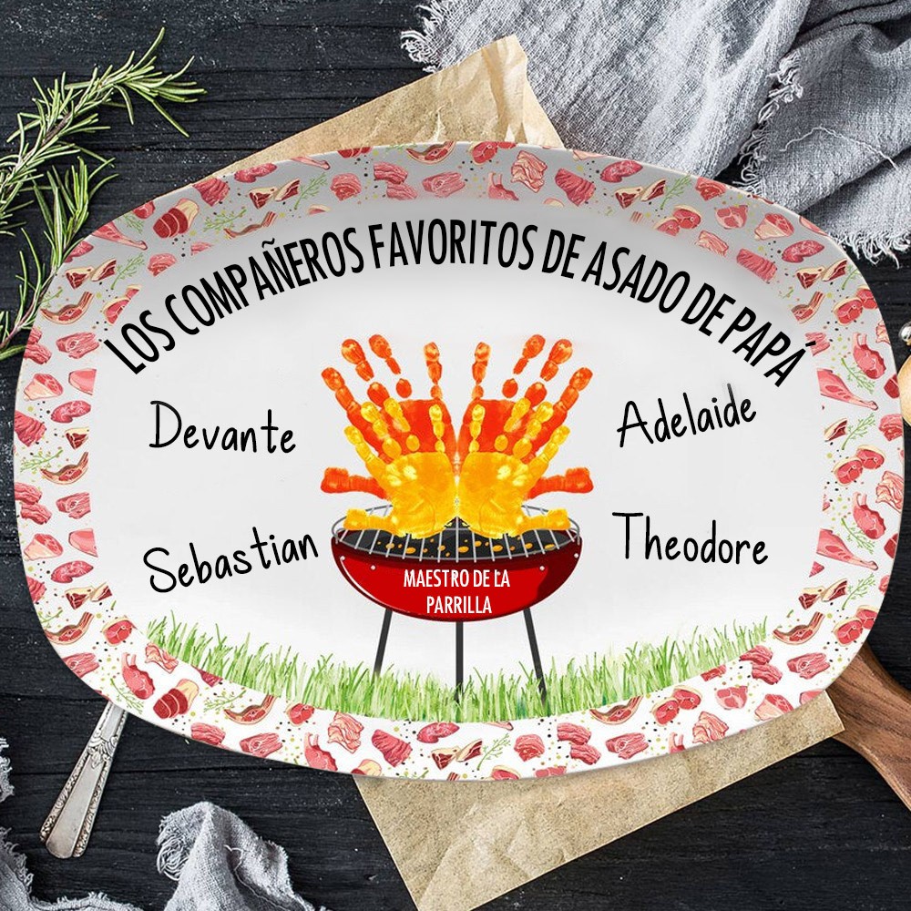 Placa de barbacoa personalizada con huellas de manos personalizadas de los amigos de la parrilla favoritos de papá con nombres de niños Ideas de regalos para el día del padre