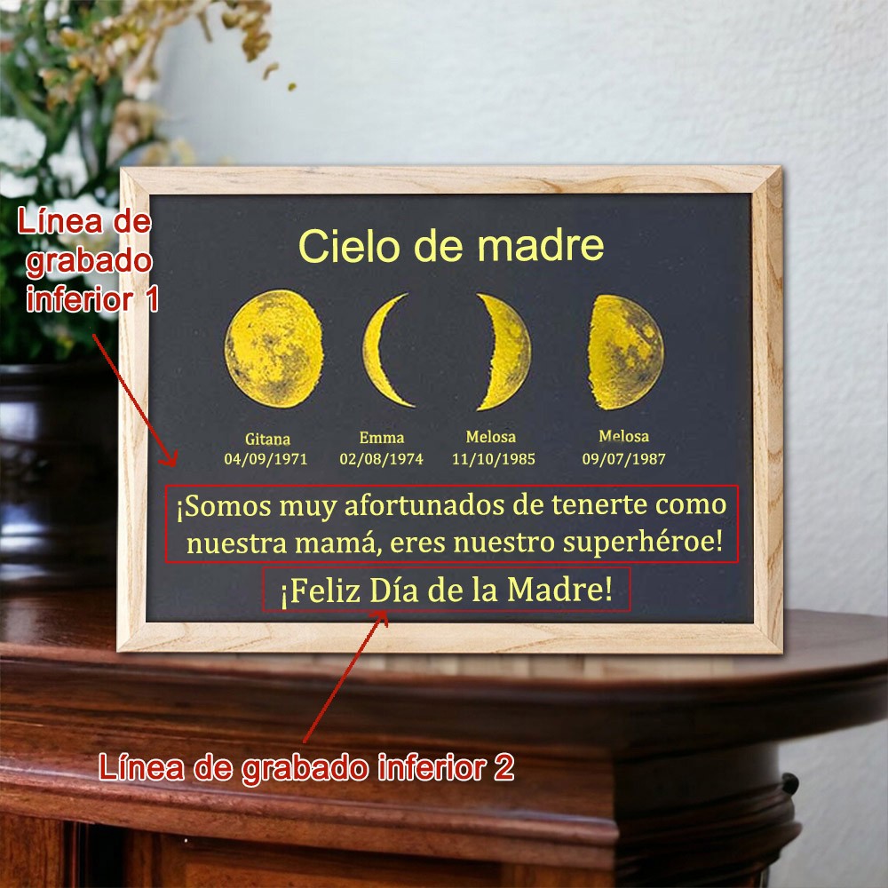 Regalos personalizados del recuerdo del marco de la impresión de la fase lunar del universo de la mamá para la abuela de la mamá