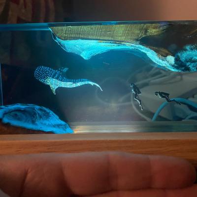 Lámpara Cubo de Resina y Madera con Tiburón Ballena, Luz de Noche Hecha a Mano, Regalo de Cumpleaños