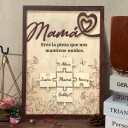 Letrero personalizado con el texto "Mamá, eres la pieza que nos mantiene unidos", pieza de rompecabezas con nombres de niños, regalo para mamá primeriza, regalo para el Día de la Madre.