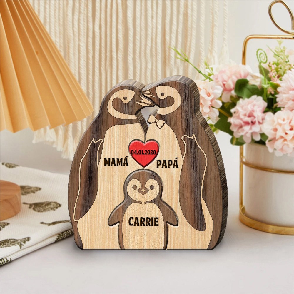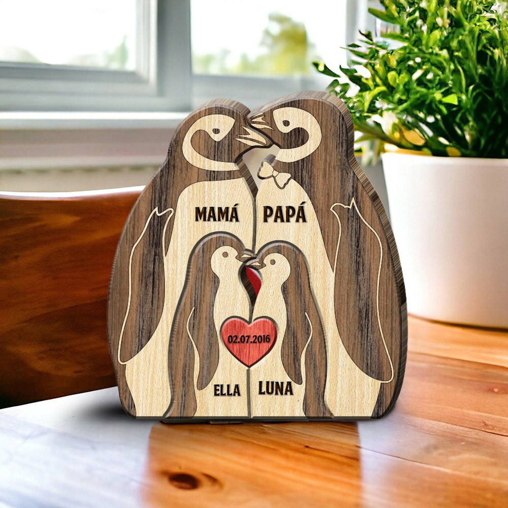 Rompecabezas de madera personalizado con la familia de pingüinos y los nombres de los niños, regalo único para mamá, abuela, ideas de regalos para el día de la madre