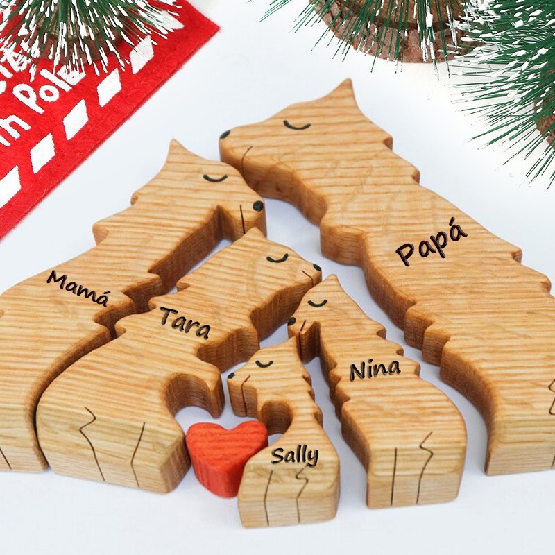 Rompecabezas de madera personalizado con nombres de familia y niños de lobos, regalos del día de la madre, regalo único para mamá, abuela, mamá, regalo de embarazo