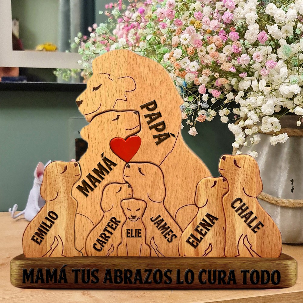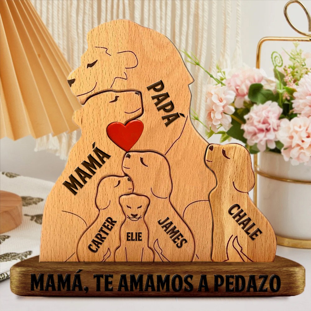 Rompecabezas familiar de leones de madera personalizado con nombres de bebé grabados, regalo único para nuevas mamás, regalo de cumpleaños para mamá, abuela, ideas de regalos para el día de la madre