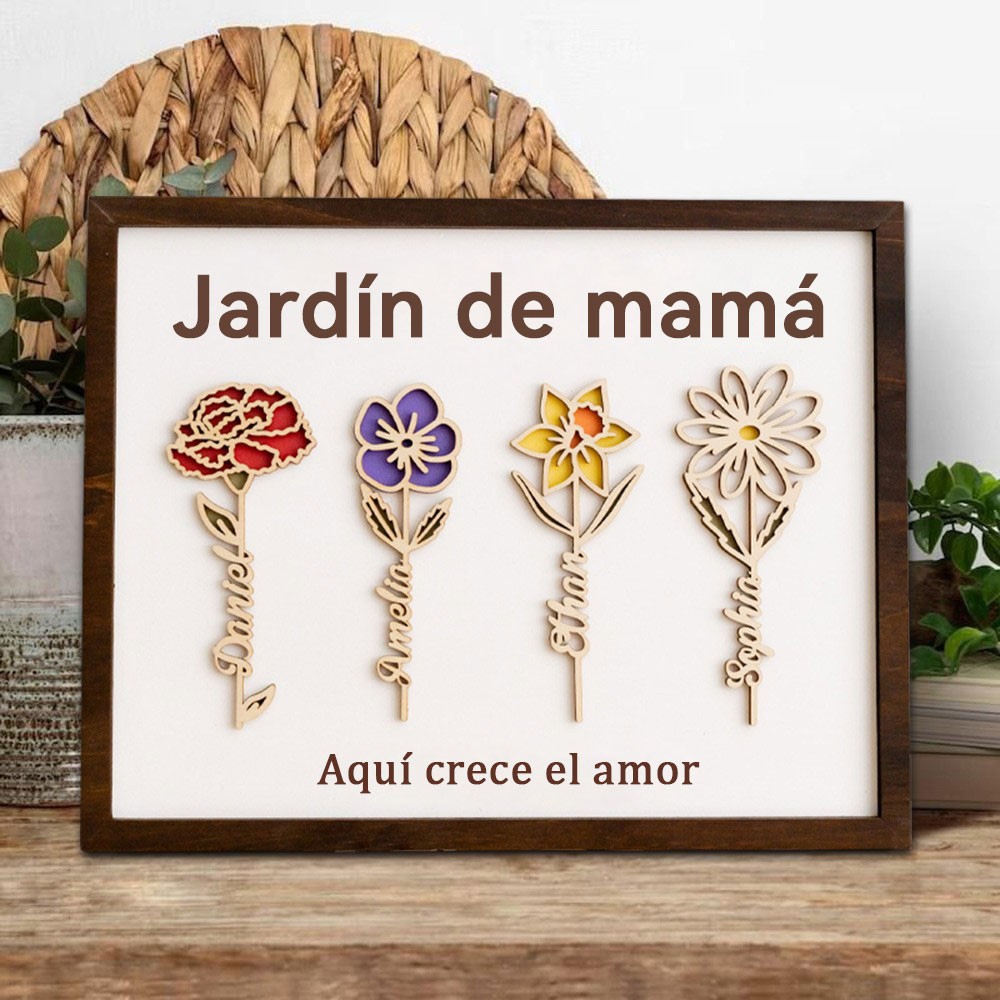 Señal de marco de flores con nombre de mes de nacimiento de jardín de mamá de madera personalizada, regalo familiar único para mamá, abuela, ideas de regalo para el Día de la Madre.