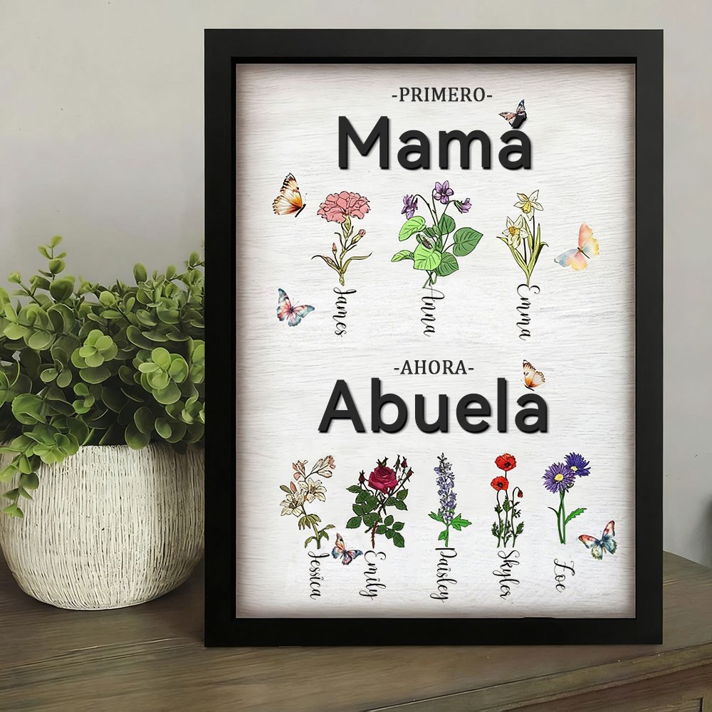 Tablero de flores de mes de nacimiento de madera personalizado para mamá y abuela con nombres de niños, regalo único y memorable para mamá, abuela, regalo del Día de la Madre.