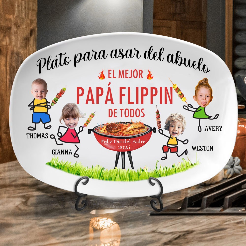 Plato para asar personalizado para papá con foto y nombre de los niños El mejor plato para papá de todos los tiempos Regalos para el día del padre