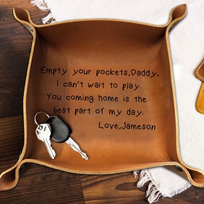 Empty Your Pockets Daddy Personalized Leather Valet Tray for Dad Keepsake Gifts for Men Father's Day Gift