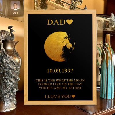 The Day You Became My Dad Personalized Moon Phase Frame with Kids Names Gifts for Dad Father's Day Gift