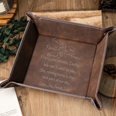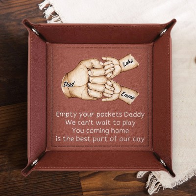 Empty Your Pockets Daddy Custom Leather Valet Tray with Kids Names Gifts for Dad Father's Day Gift