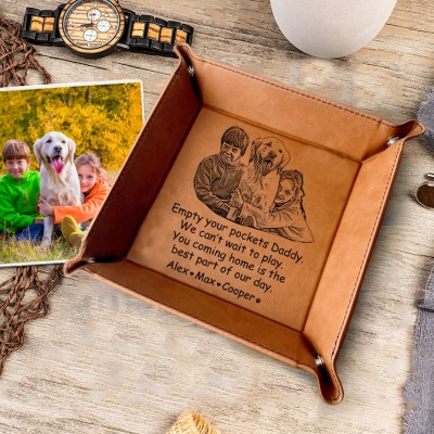 Empty Your Pockets Daddy Personalized Leather Valet Tray with Photo for Dad Unique Father's Day Gifts