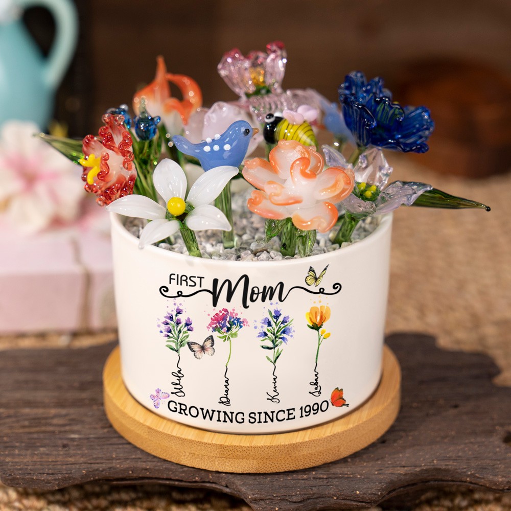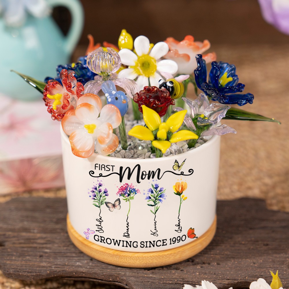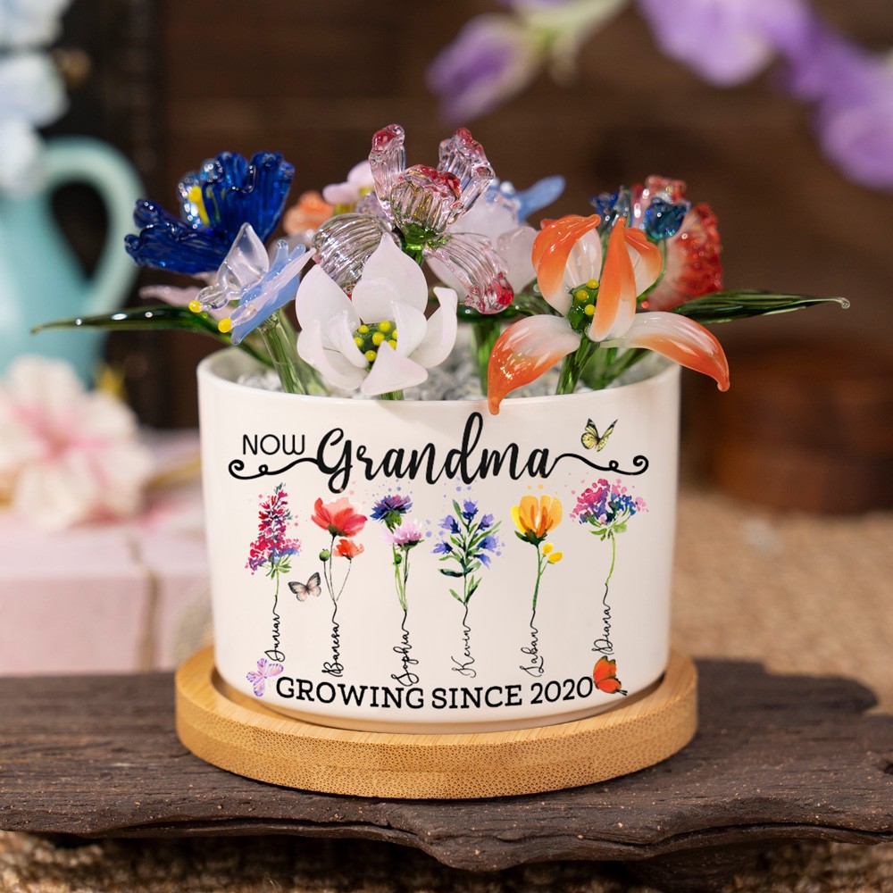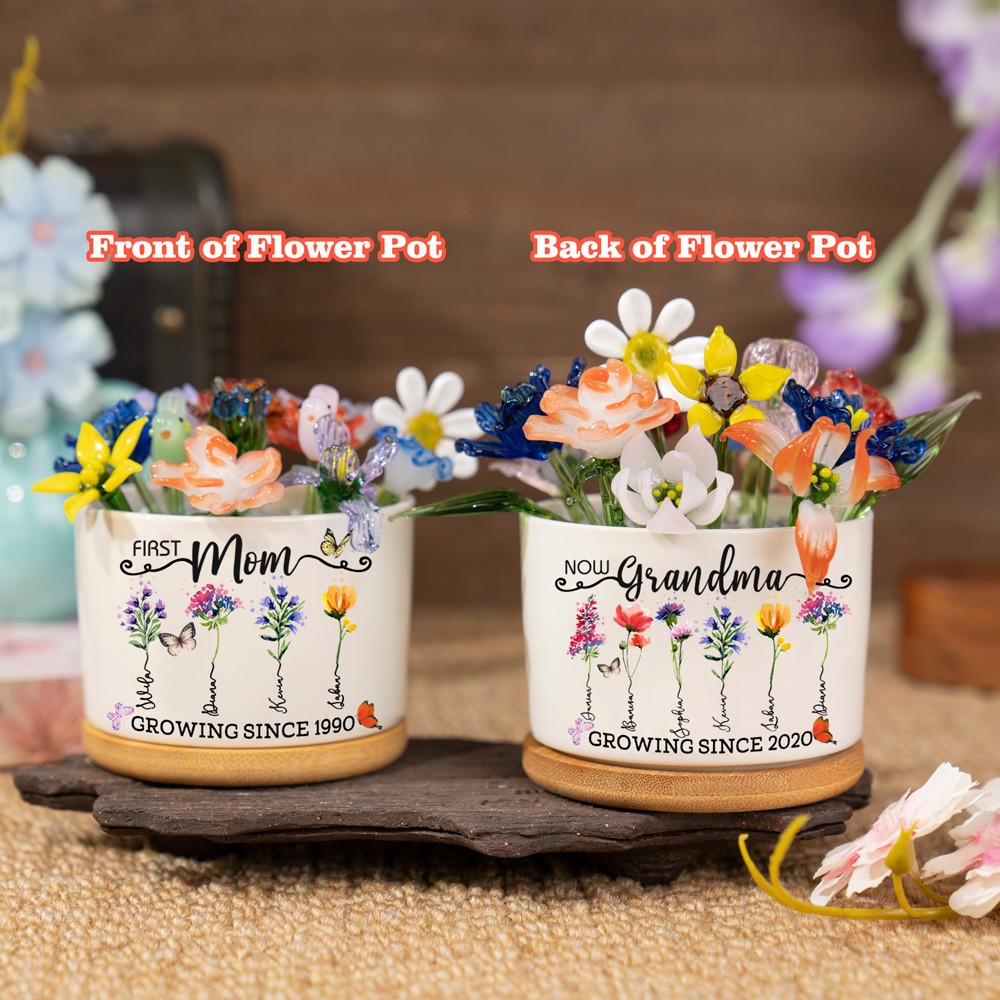 First Mom Now Grandma Custom Glass Birth Flower Pot With Kids Name For Mothers Day Gift Ideas