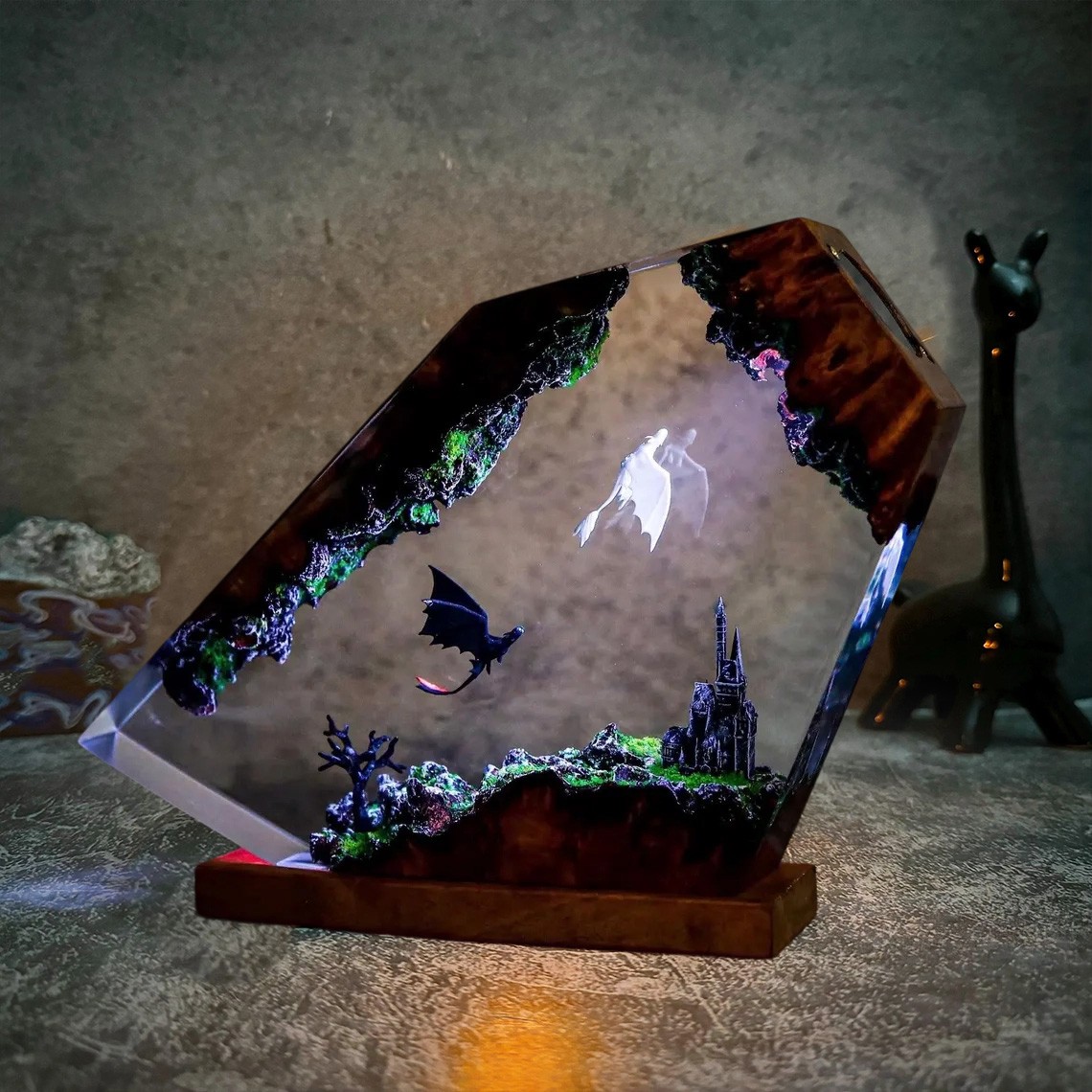 Flying Dragon Resin Art Wood Lamp Gift for Couple Birthday Gift for Him Christmas Gifts