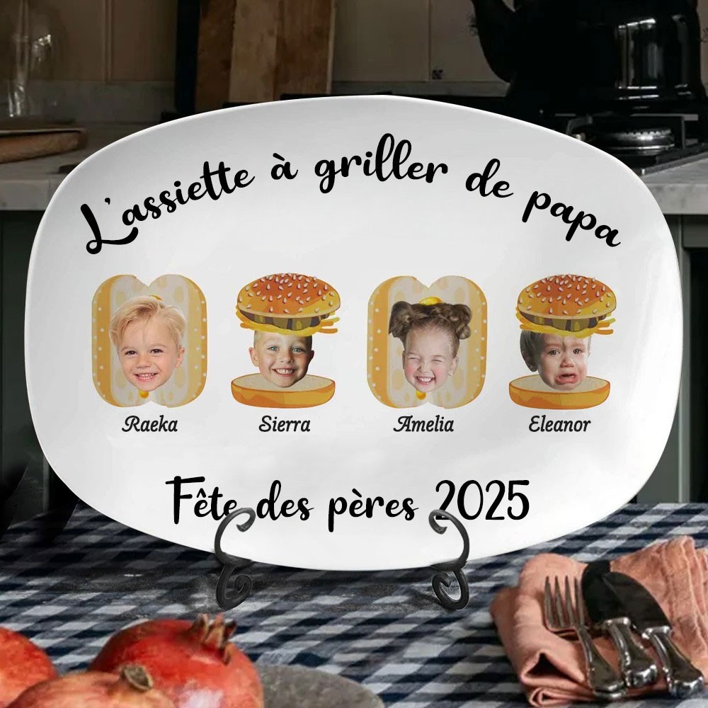 Assiette de grillades personnalisée pour papa avec les noms des enfants et une photo Cadeau unique pour la fête des pères