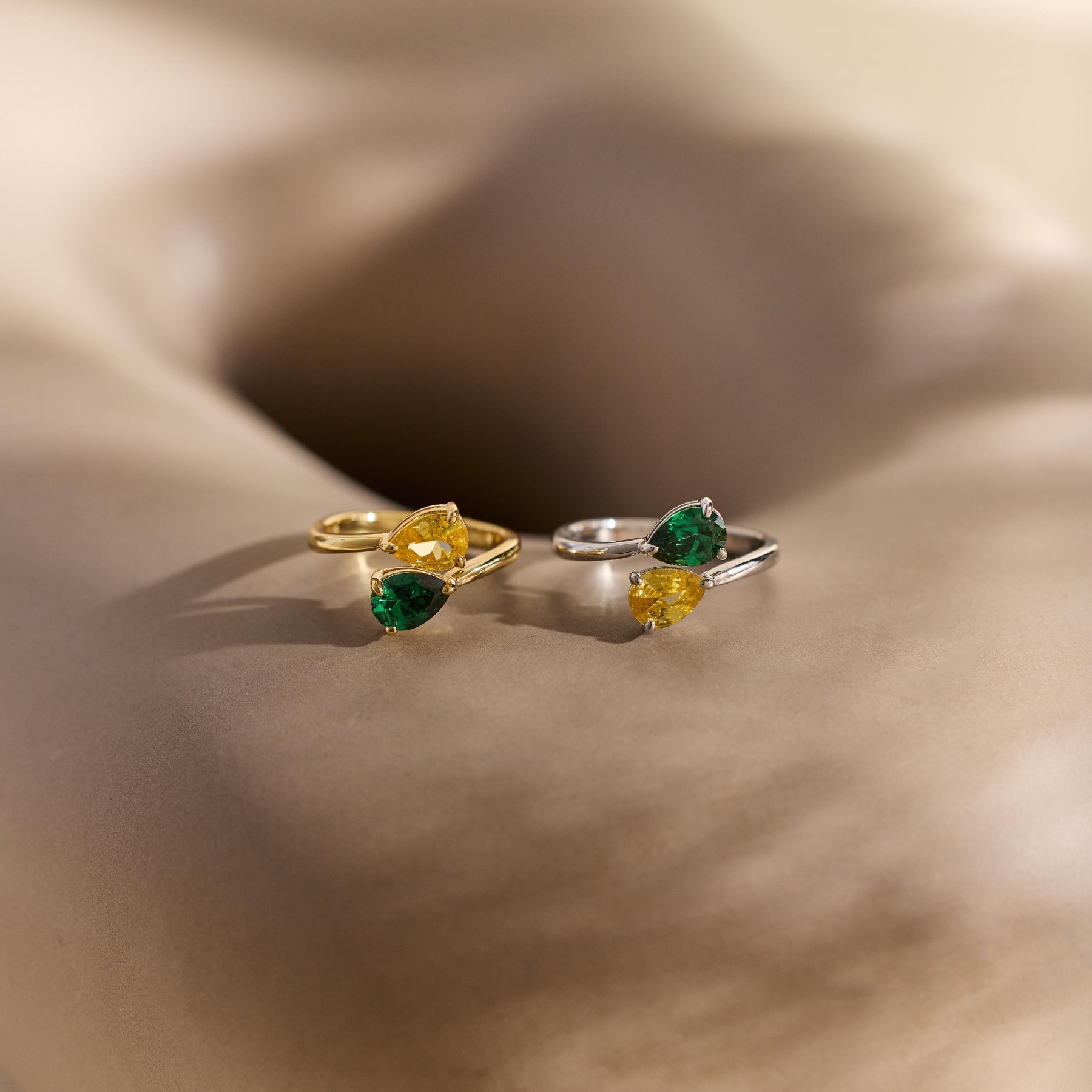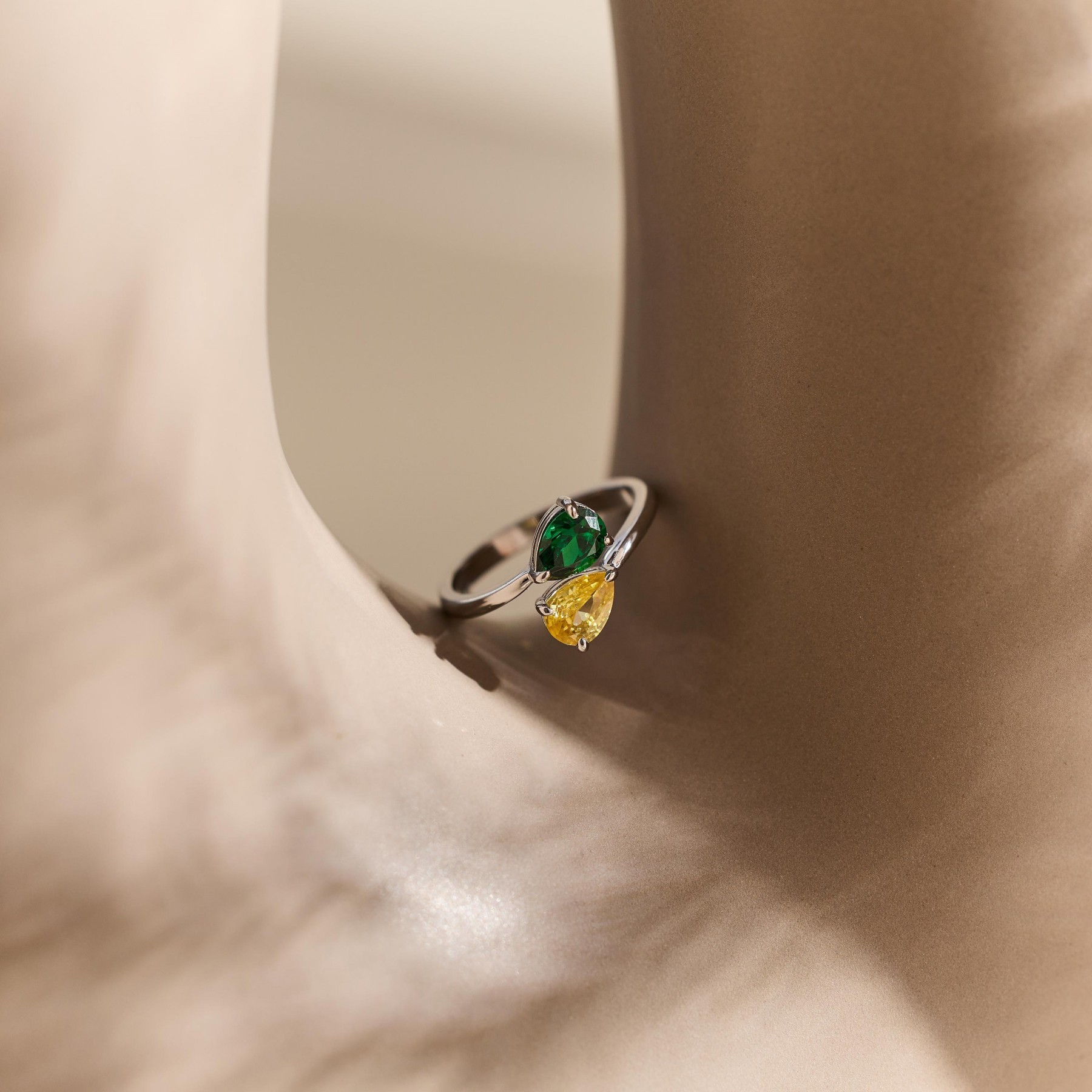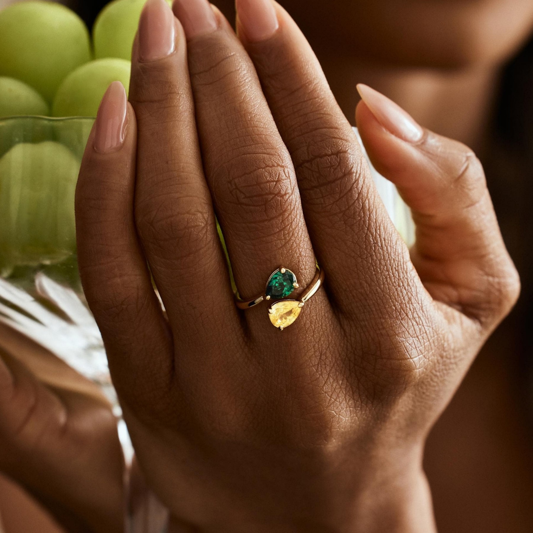 Bague Personnalisée avec Pierre de Naissance Ajustable Bague Délicate à Deux Pierres Cadeau d'Anniversaire pour Elle