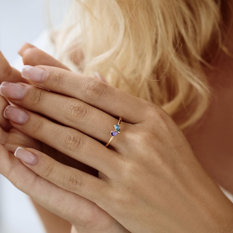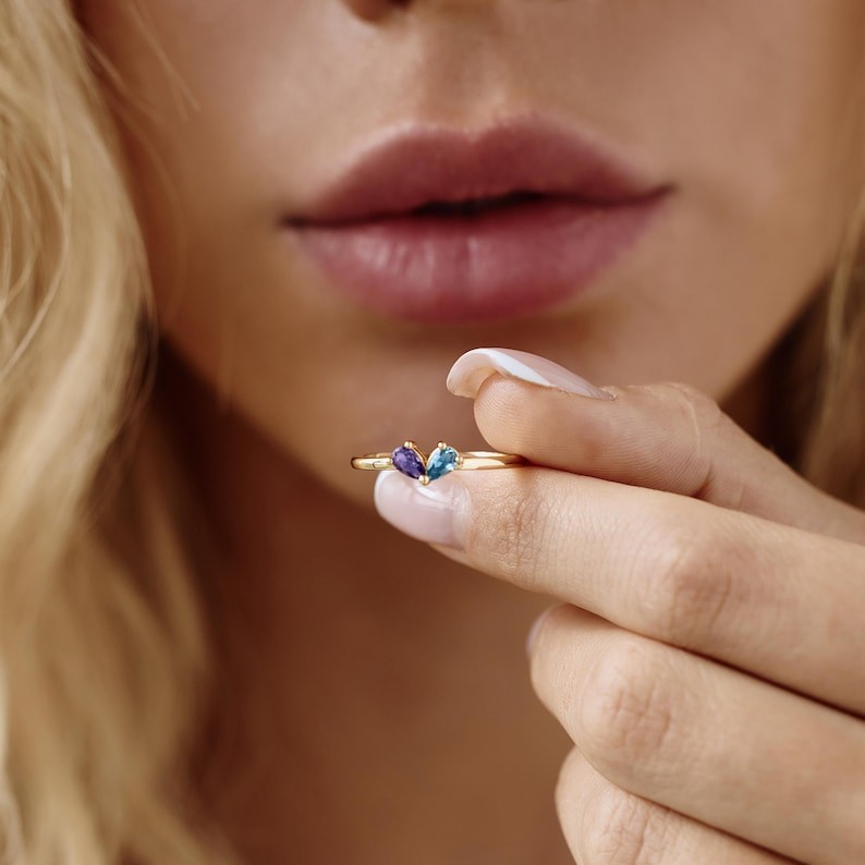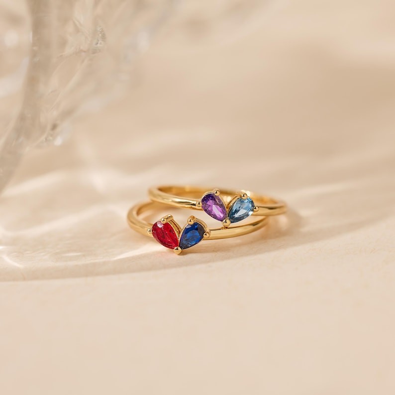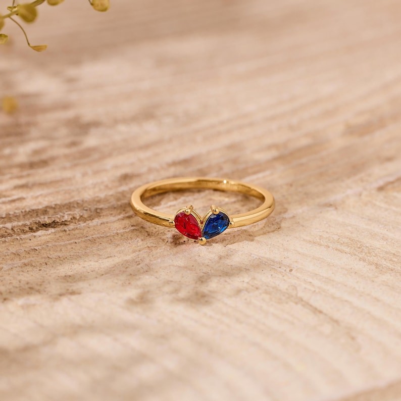 Bague Personnalisée avec Pierre de Naissance en Forme de Cœur Bague Personnalisée à Deux Pierres