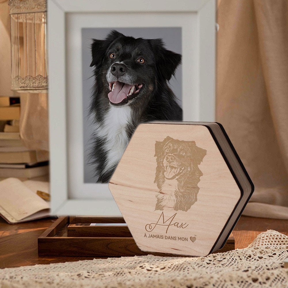 Boîte Commémorative en Bois Gravée à Poils d'Animal Personnalisée avec Photo Cadeaux en Cas de Perte d'Animal Idées Cadeau de Noël