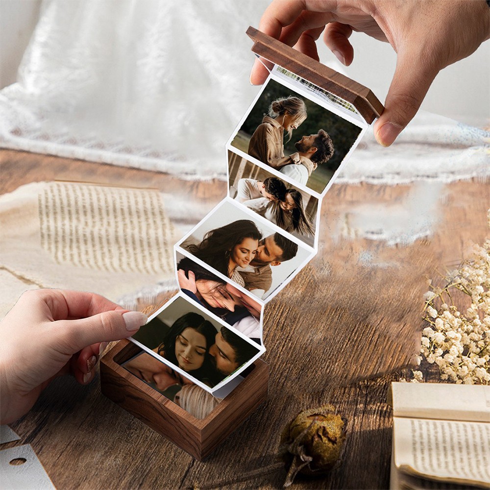 Boîte Photo en Bois à Tiroir Personnalisée Cadeaux Commémoratifs pour Couples Cadeaux de Mariage Anniversaire Cadeau Saint-Valentin pour Elle