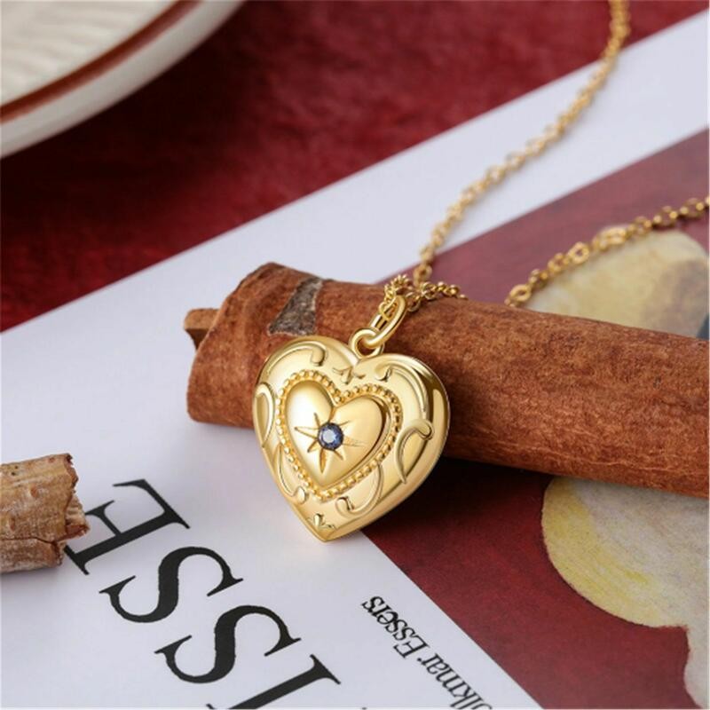 Cadeau Romantique pour la Saint-Valentin Collier Photo en Forme de Cœur Personnalisé avec Pierre de Naissance