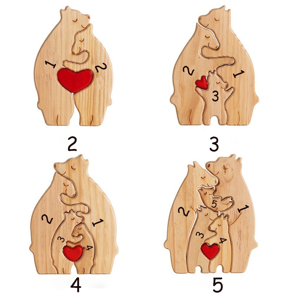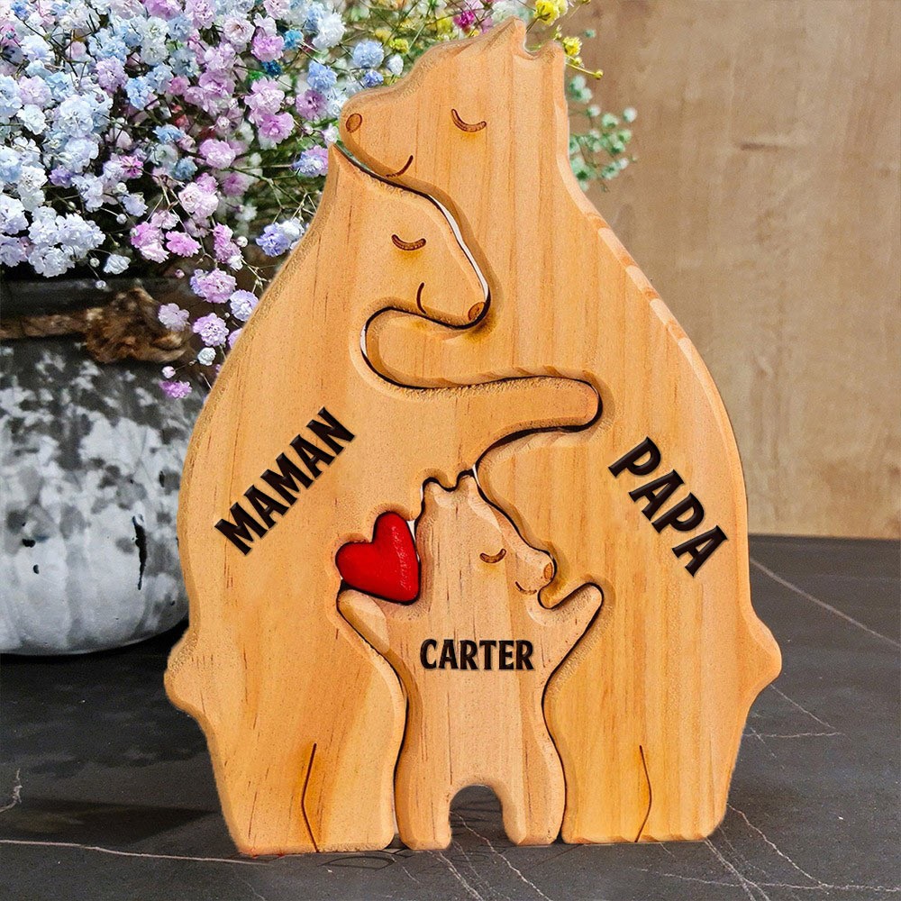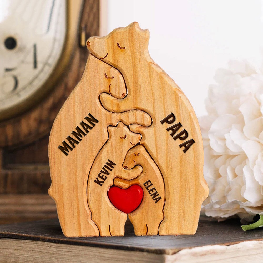 Cadeau souvenir personnalisé de puzzle de nom de famille d'ours en bois pour maman