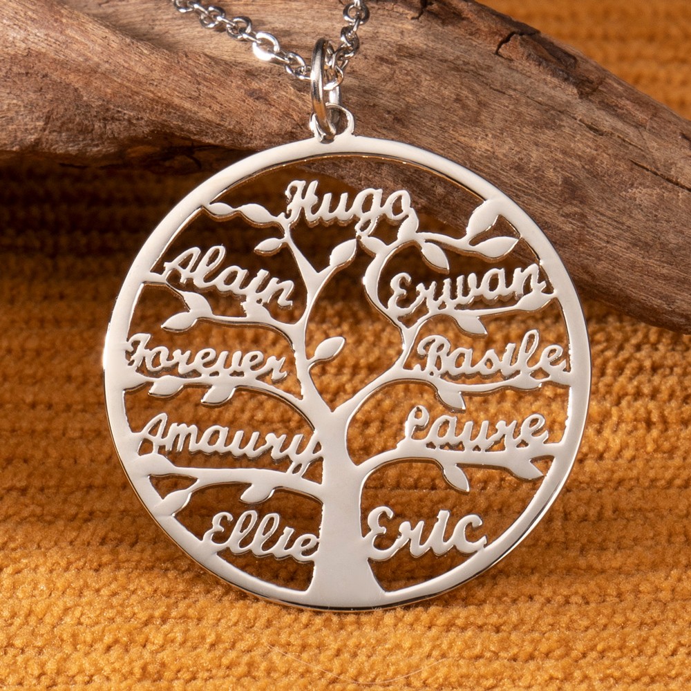 Cadeaux Uniques pour Maman et Grand-Mère Collier Arbre Généalogique Personnalisé avec Noms Gravés et Pierres de Naissance