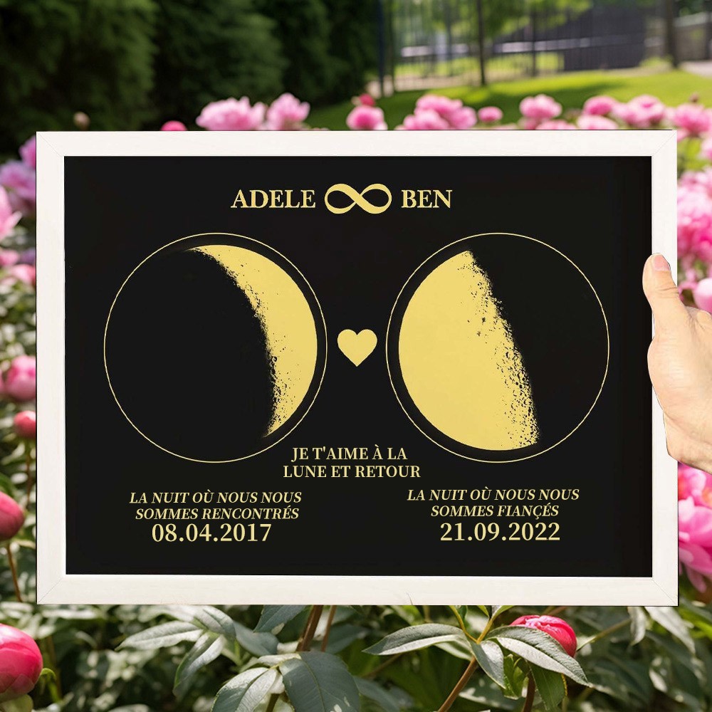 Cadre de phase de lune personnalisé en bois Idées de cadeaux d'anniversaire Cadeau unique pour couple
