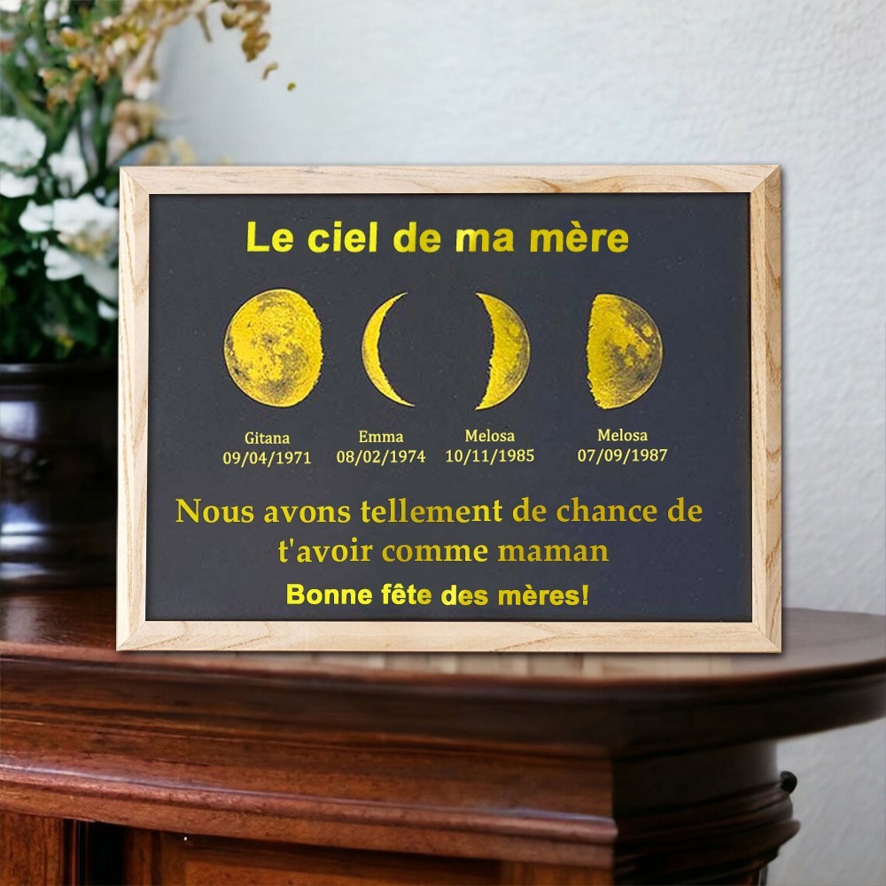 Cadre imprimé personnalisé avec phases de lune, univers de maman, avec noms d'enfants, cadeaux uniques pour la fête des mères