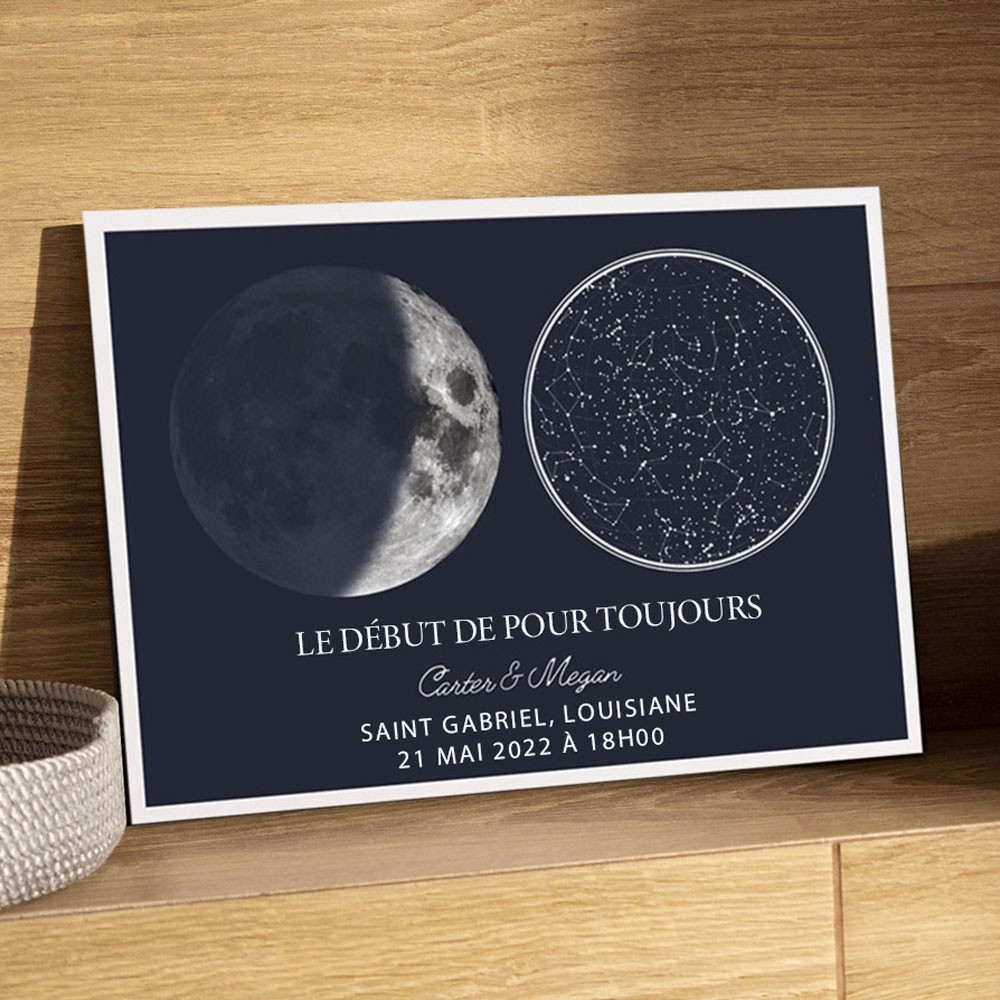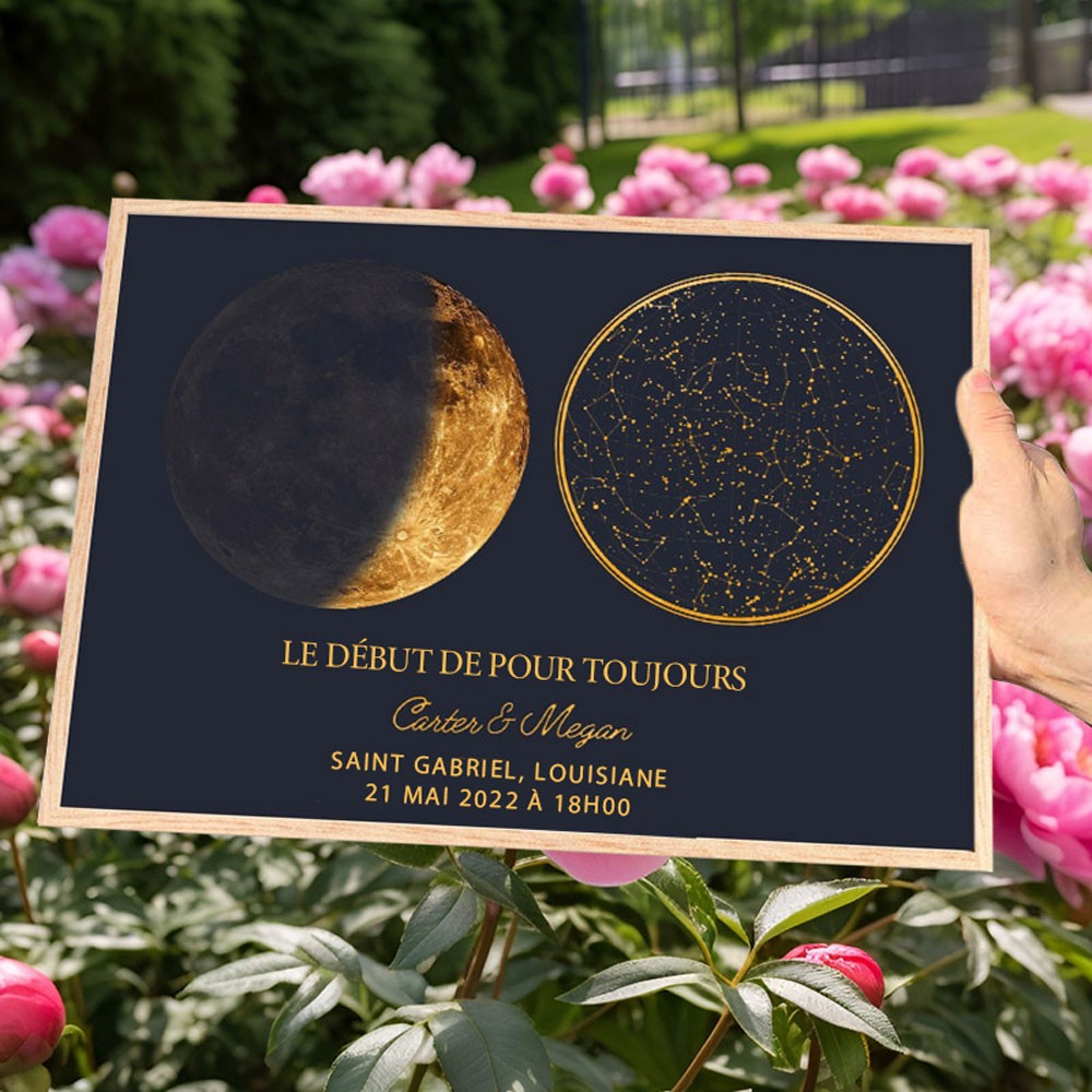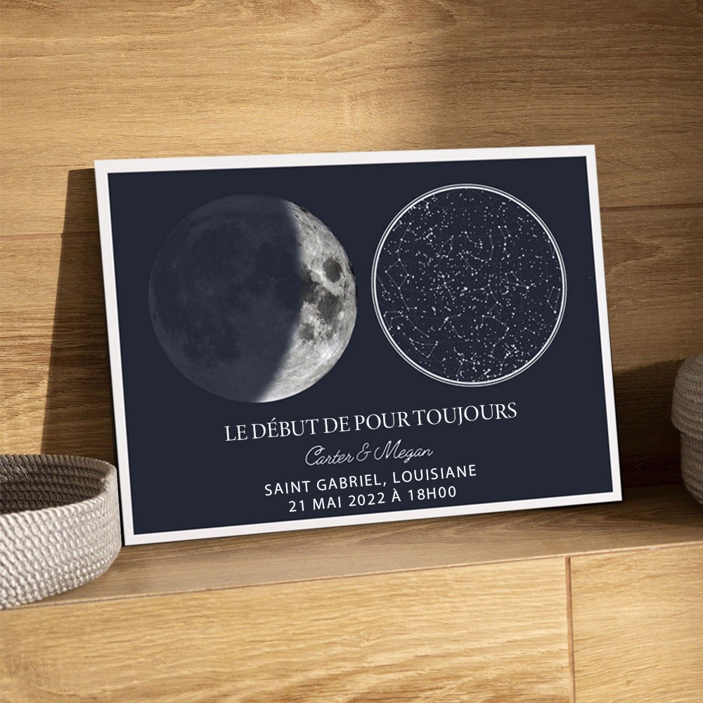 Cadre Personnalisé avec Carte du Ciel et Phases Lunaires Idées Cadeaux d'Anniversaire Cadeau Unique pour les Couples Cadeau de Noël