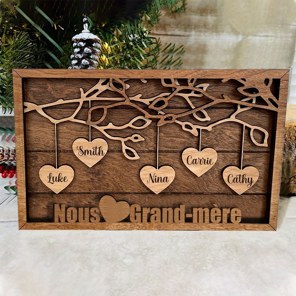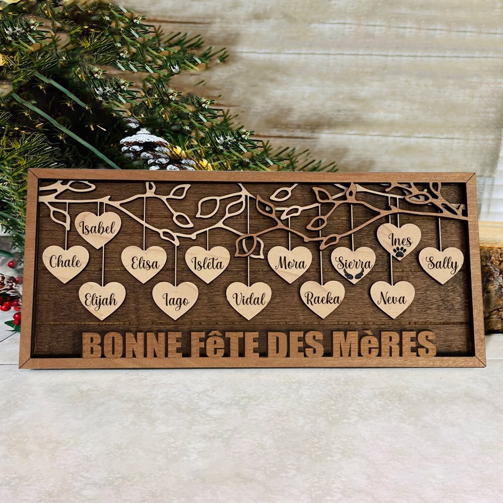 Cadre personnalisé en forme de cœur suspendu pour famille, cadeau de nouvelle maman, cadeau personnalisé pour maman, grand-mère