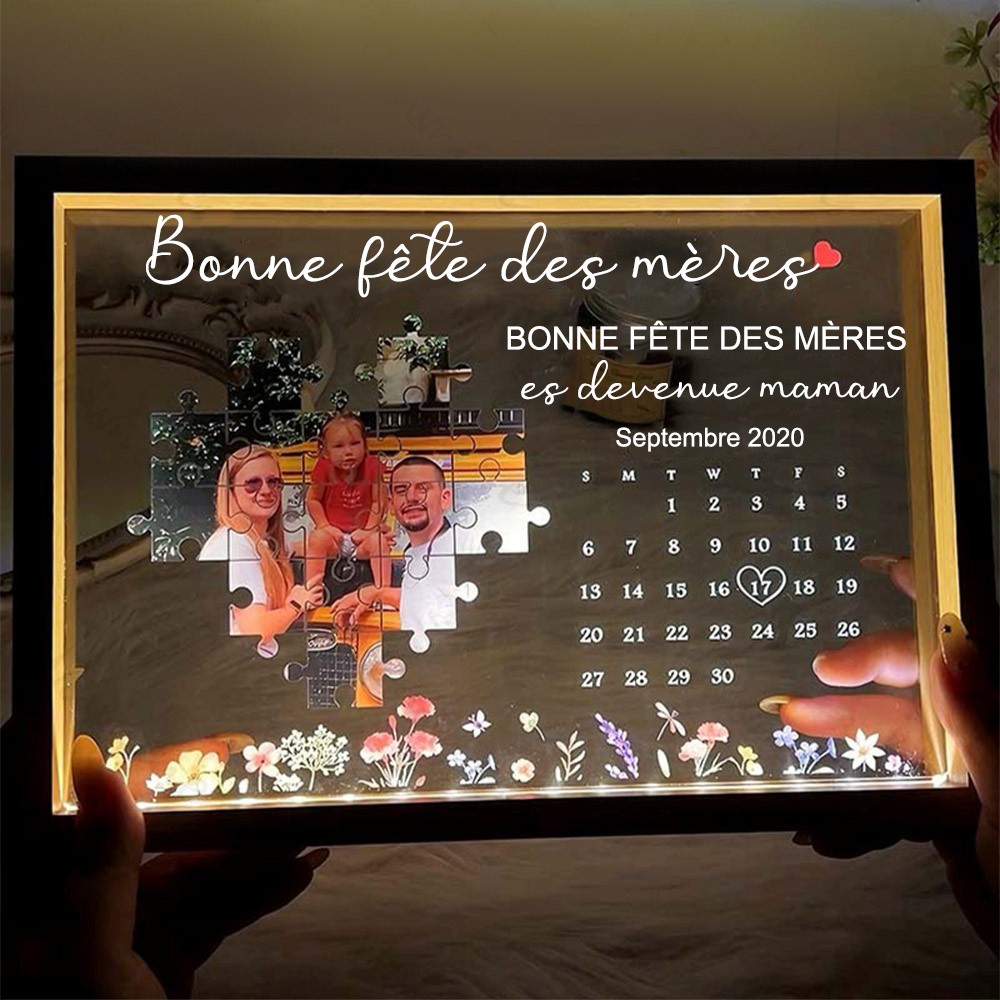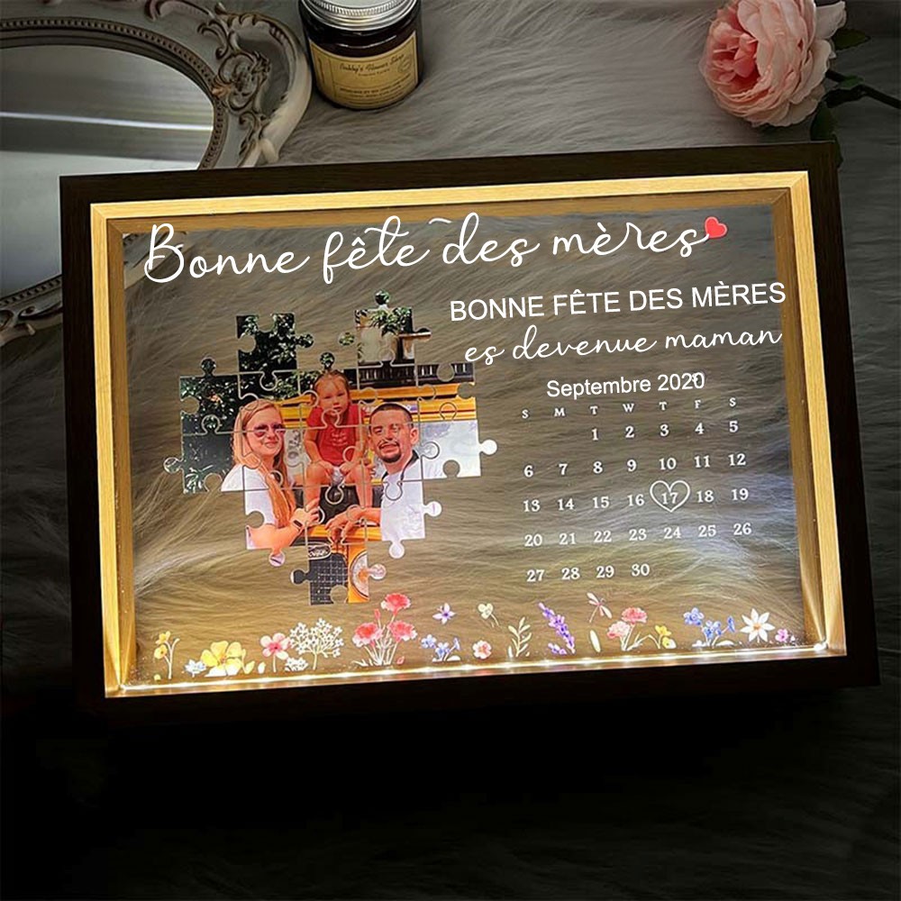 Cadre Photo Personnalisé avec Veilleuse « C'est le Jour où Tu es Devenue Maman » Cadeaux Souvenirs pour Maman Cadeau pour la Fête des Mères