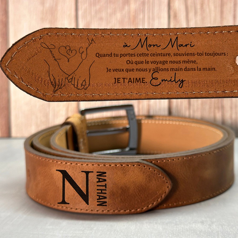 Ceinture en Cuir Gravée Personnalisée Cadeau d'Anniversaire pour Petit Ami Cadeau de Noël pour Mari