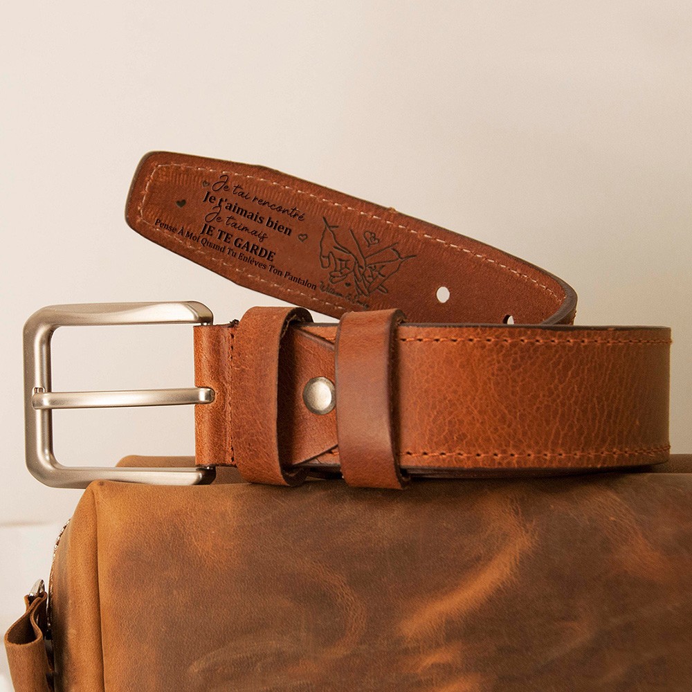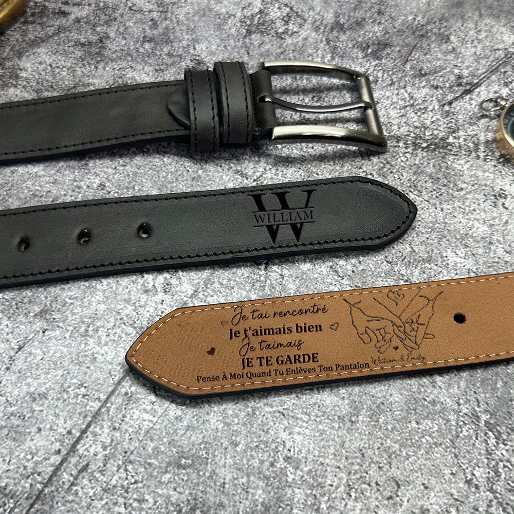 Ceinture en Cuir Gravée Personnalisée pour Homme Cadeau pour Petit Ami Cadeau d'Anniversaire pour Mari Cadeaux de Noël