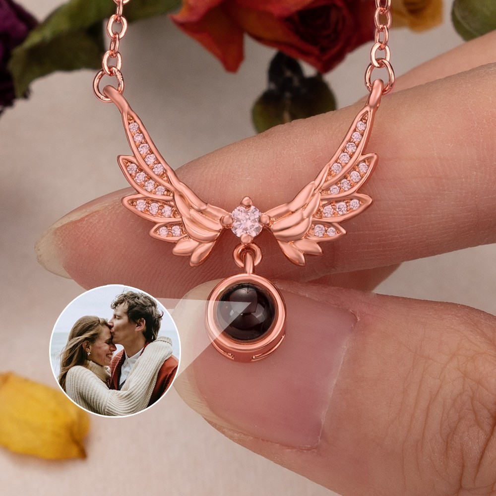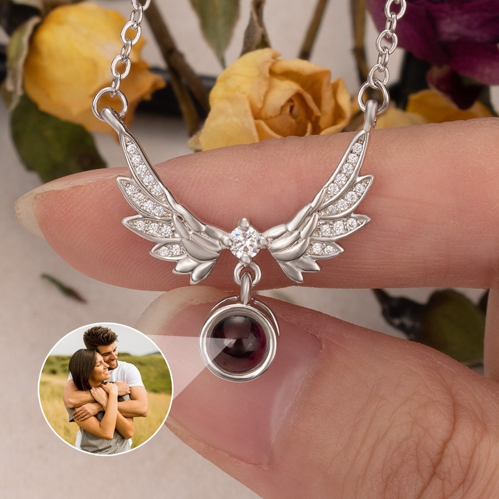 Collier à breloques avec projection de photo d'ange personnalisé, cadeau commémoratif pour elle