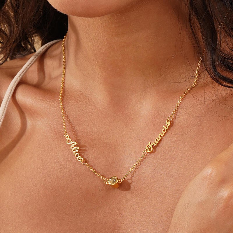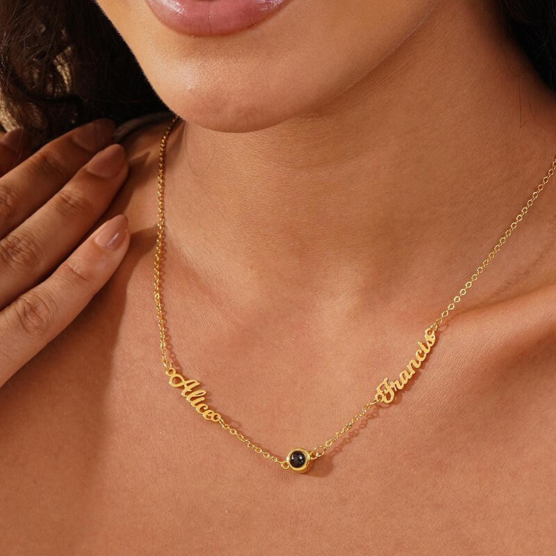 Collier à Projection Photo Personnalisé 2 Prénoms Cadeau Doux pour Couples