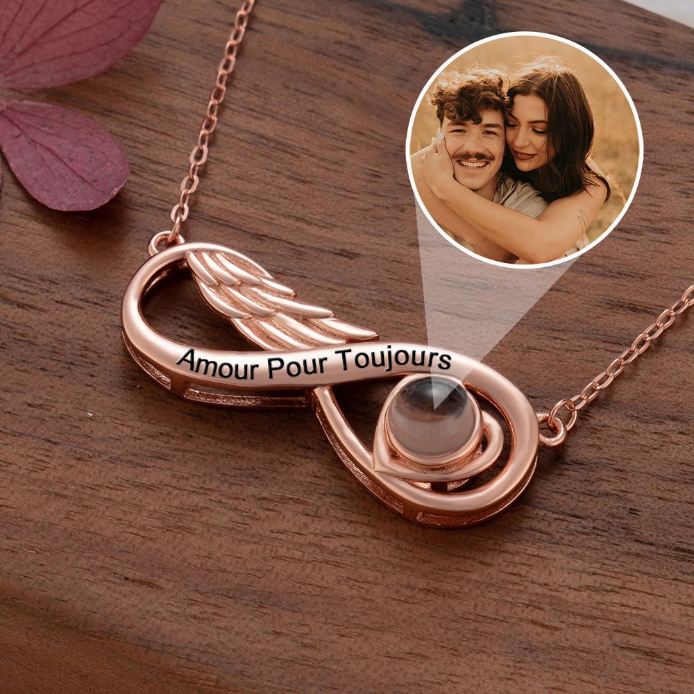 Collier de projection infini personnalisé avec image à l'intérieur Cadeaux pour femme Cadeau souvenir pour âme sœur
